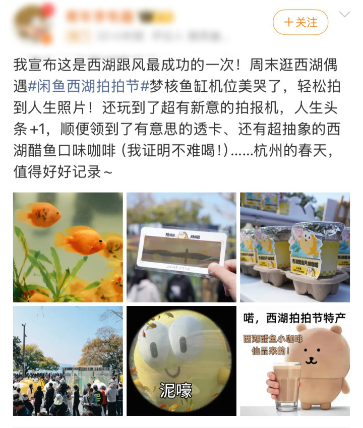正值西湖春色,江南最美好的季节。这两天,杭州西湖边突然多了一个巨型鱼缸。不过不是养鱼,而是一个新晋出片神器:闲鱼把“西湖拍拍节”搬到了湖边。周末两天,吸引了不少网友前往拍照打卡,并在小红书和微博纷纷晒出了自己拍下的专属杭州春日头条。