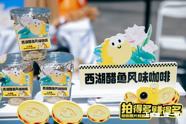 活动现场还有一杯“西湖醋鱼咖啡”成了隐藏款惊喜。只要完成指定任务挑战,就有机会解锁“西湖醋鱼咖啡”。虽然名字听着暗黑,真端到手里还挺好看,尝过的人表情各异,有人尝完当场发朋友圈:“味蕾打开了新世界的大门。”还有网友说:“西湖醋鱼咖啡,一口上头。”
