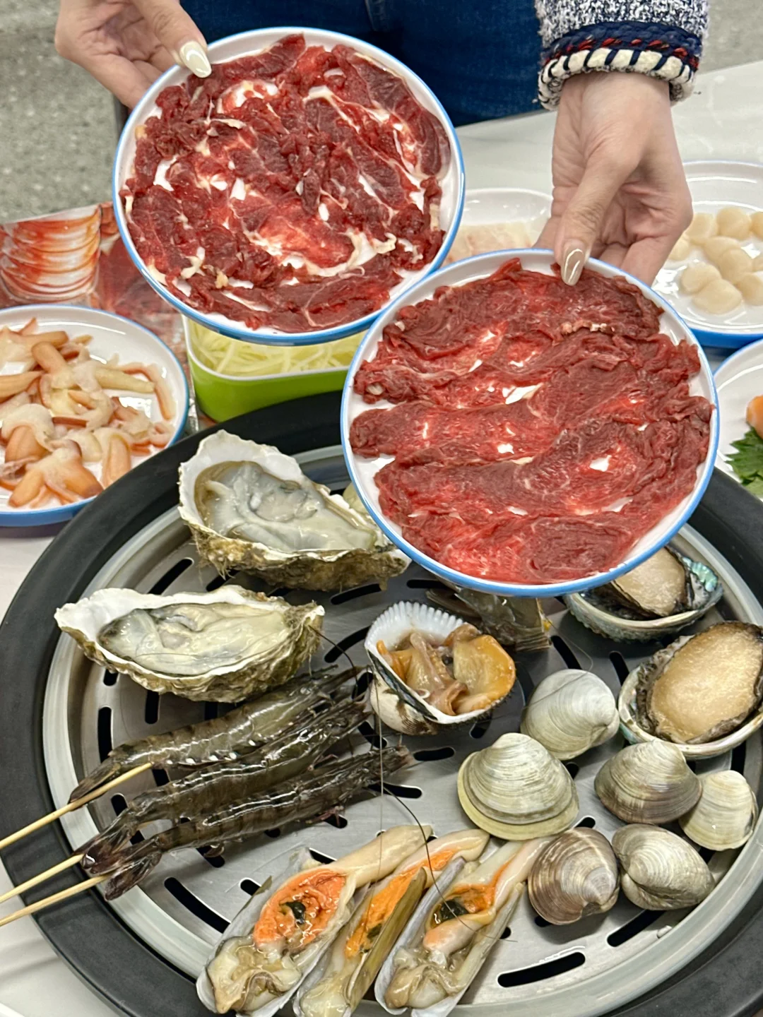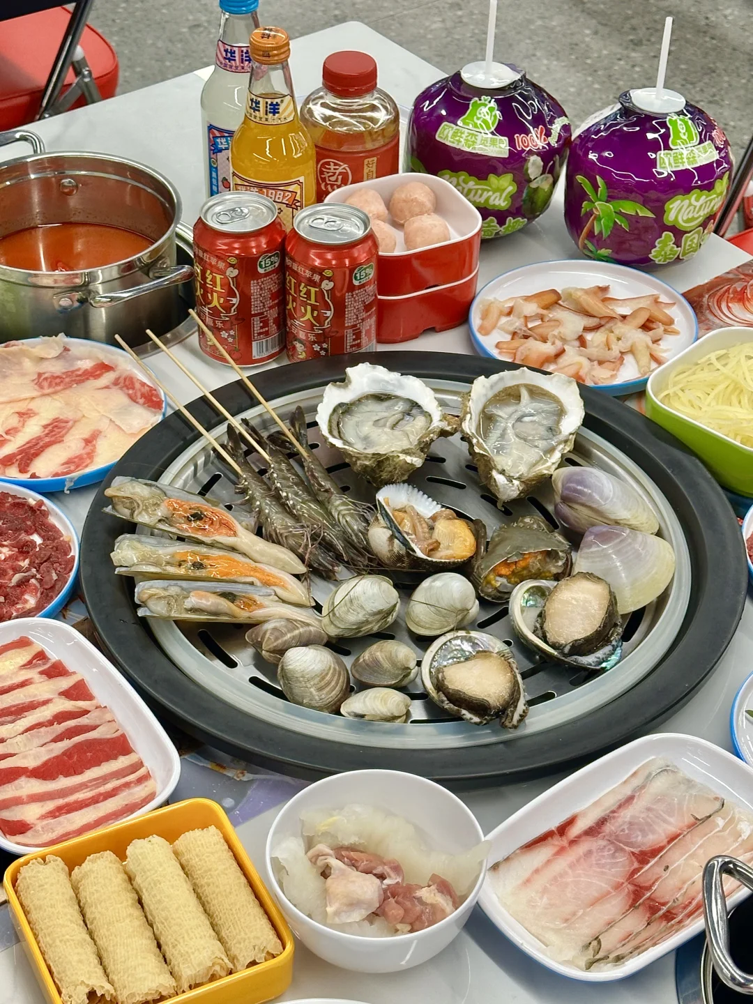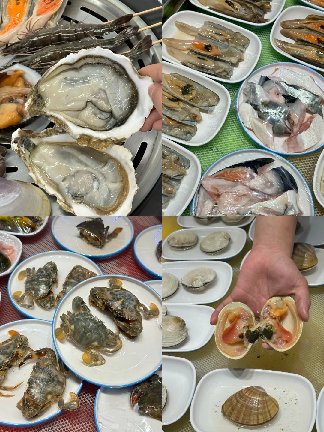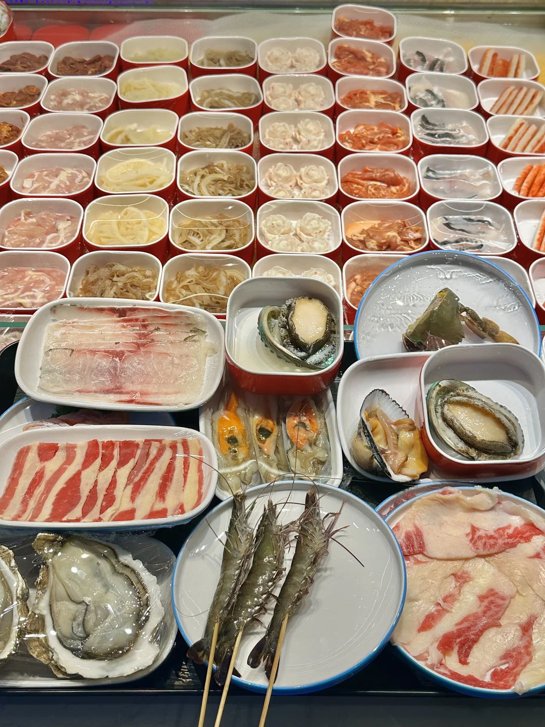 海鲜种类超丰富~~ 黑虎虾、鲍鱼、螃蟹、生蚝、各种贝类… 主打一个现捞现洗,绝对鲜活!!! 肉类也是挑到眼花,品质绝对👍🏻 随手拿都是超大个头的🦀️🦞🦪 吃起来那叫一个满足~ 花胶鸡、猪肚鸡、贵州酸汤、番茄……锅底口味也是选择多多~ 海鲜控认准这家,让你吃到嗨~
