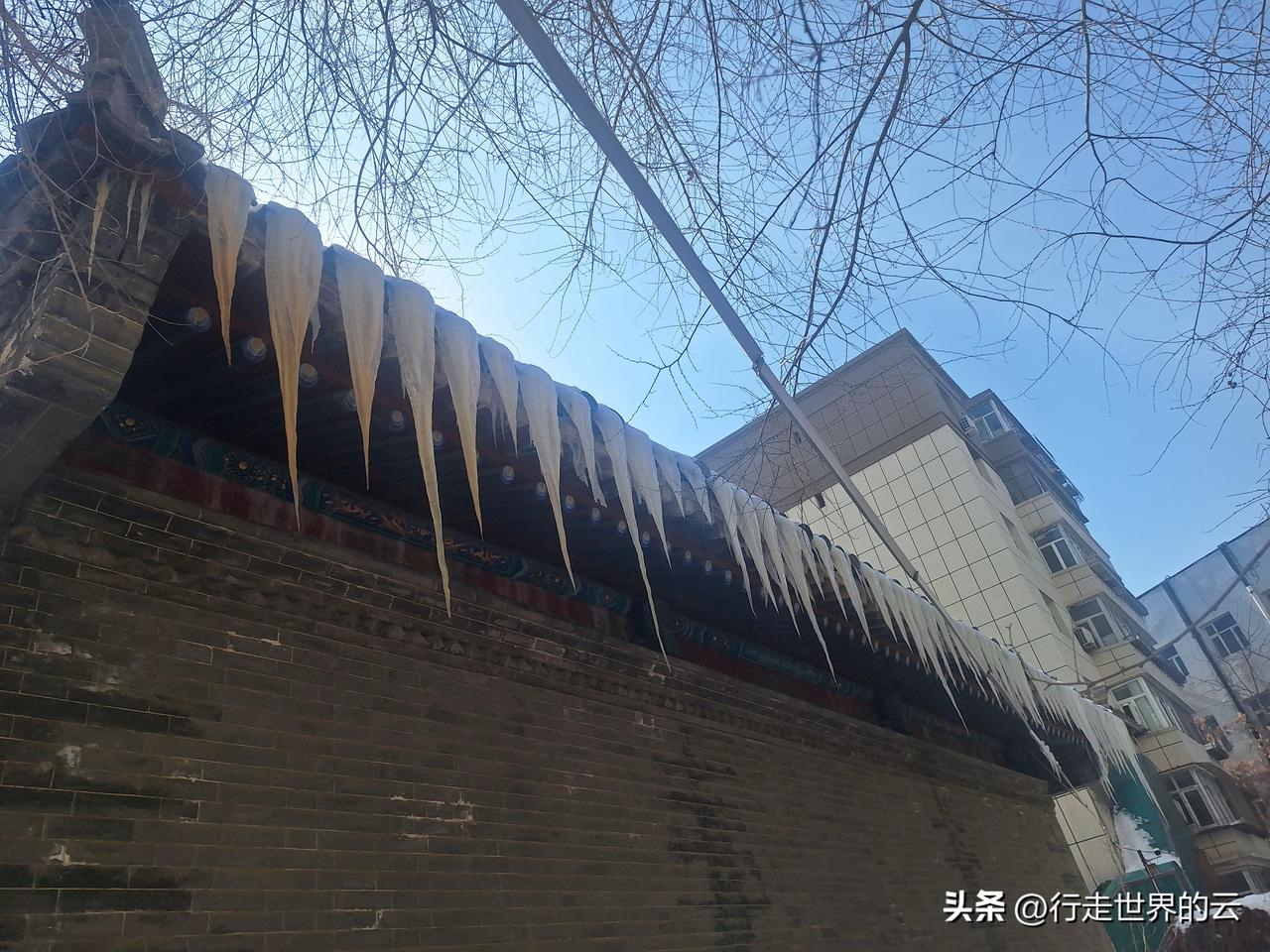 前几天的暴雪和寒潮过后,气温开始回升,请注意,这样挂在房檐上的冰锥是非常危险的,