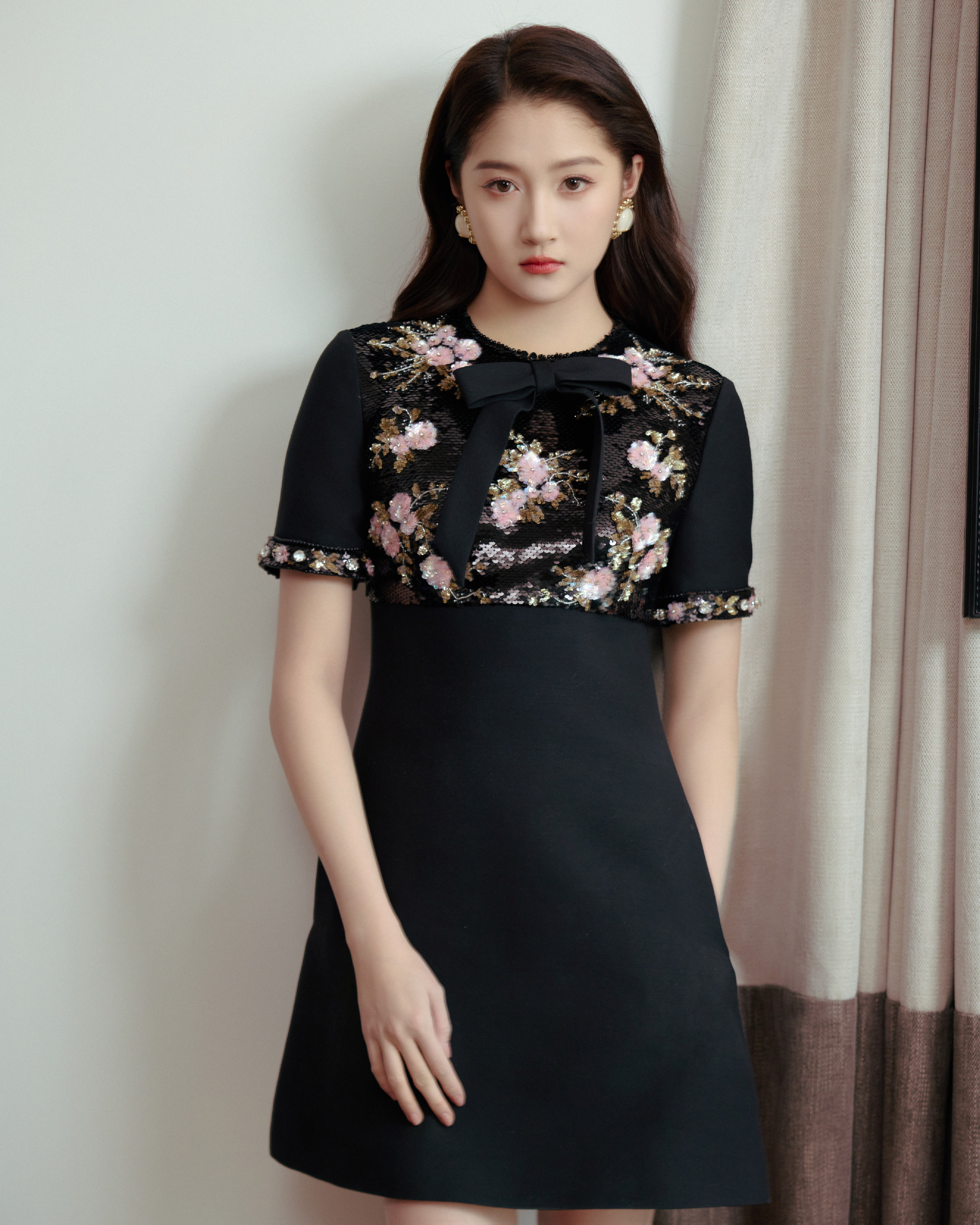 关晓彤地板的木纹接住你的影子黑裙折成安静的弧度高跟鞋尖挑着未眠的灯你偏头