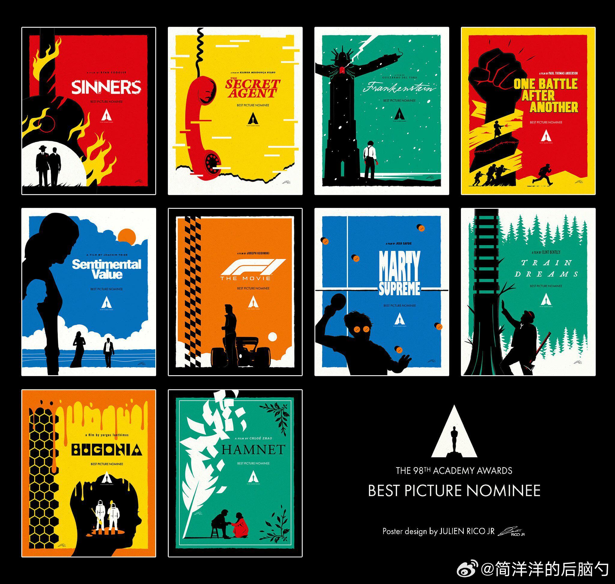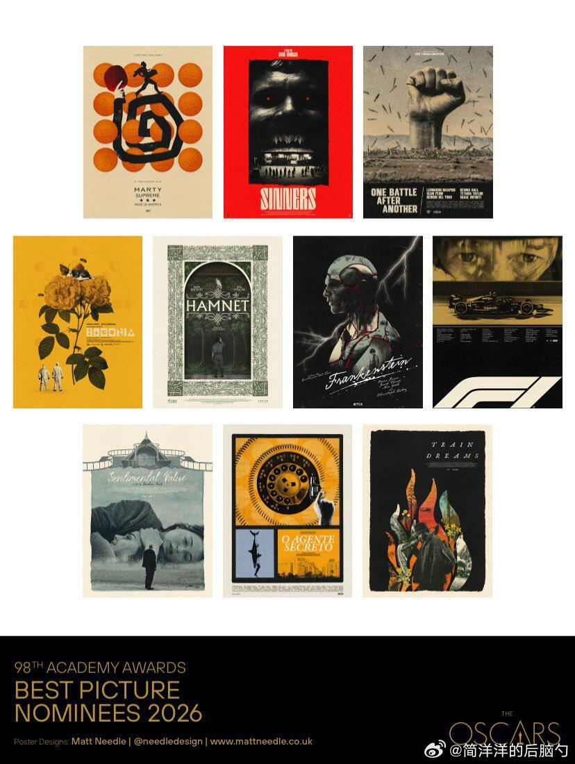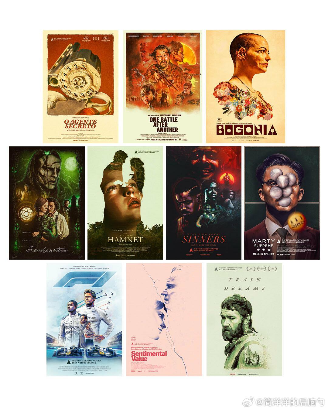 还有一些各种风格的奥斯卡最佳影片入围海报合集,每一版都风格十足,喜欢图1的复古录