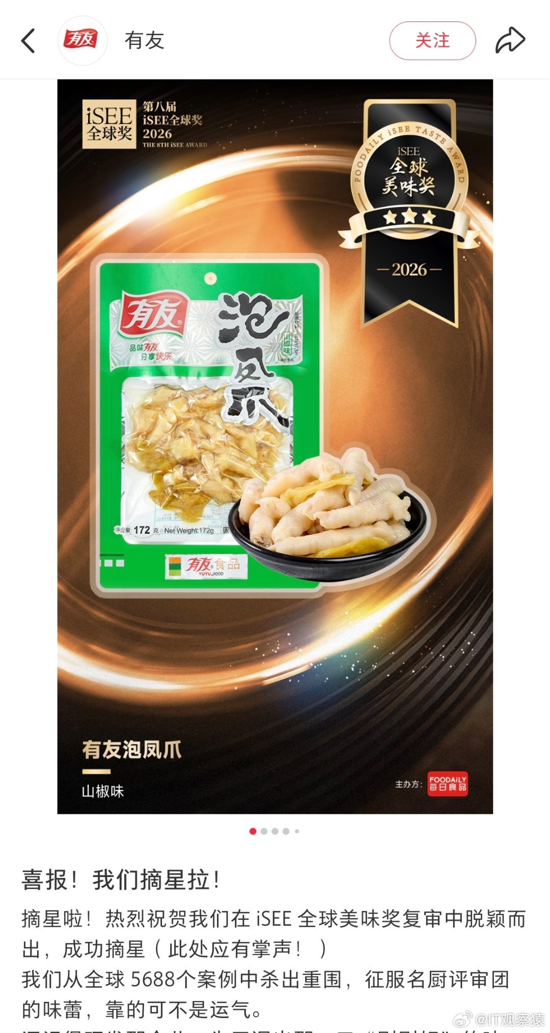 有友鸡爪有友鸡爪,全球美味奖摘星,放心食用。