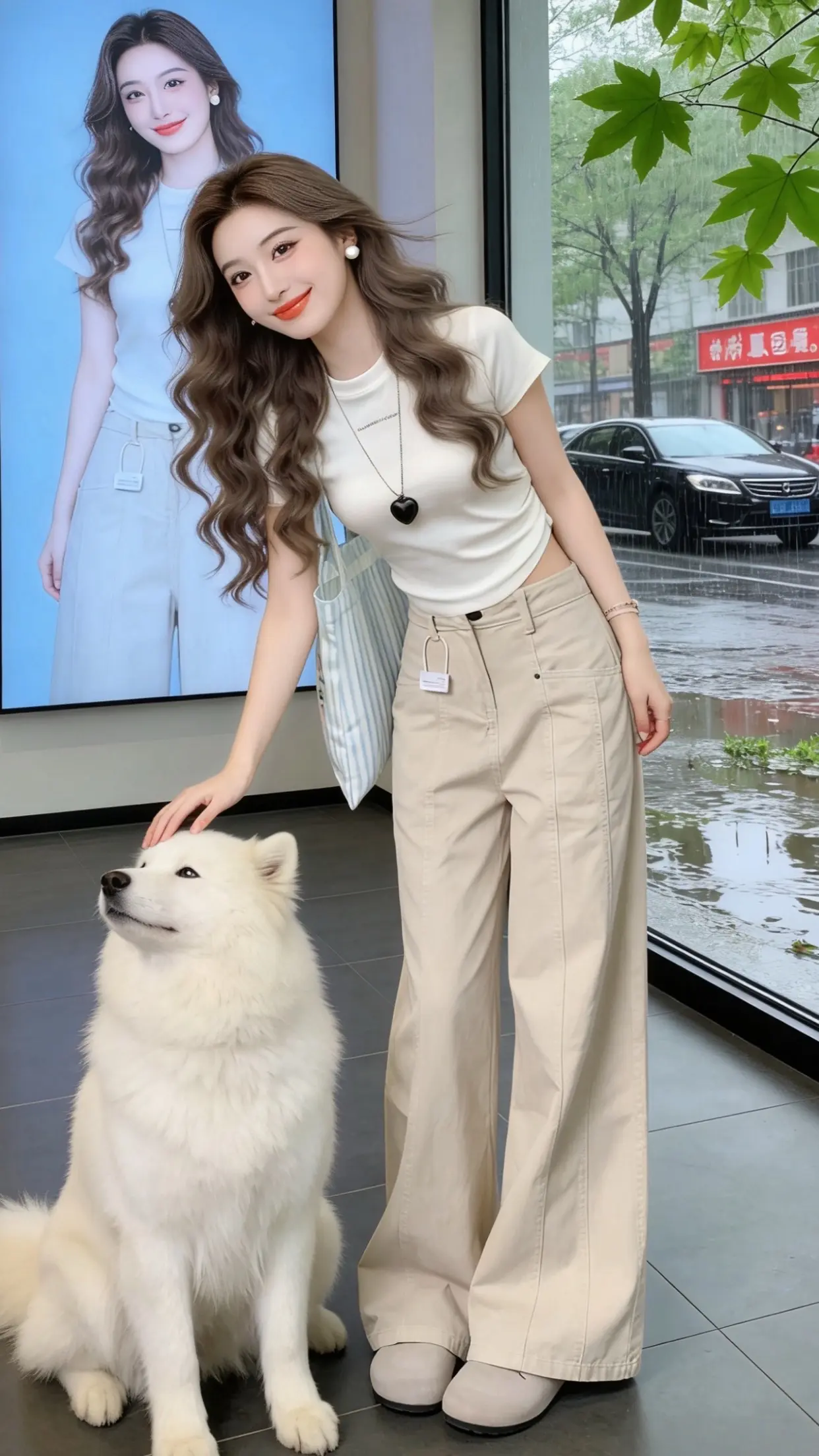 山间少女,紫色高领衫与白色牛仔裤的完美搭配,尽显自然与时尚。