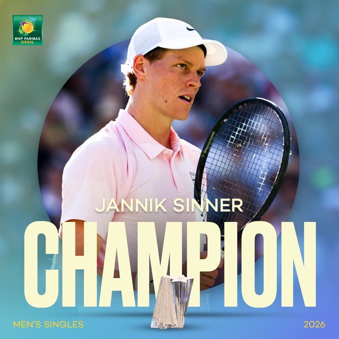 辛纳首夺印第安维尔斯冠军 苦战双抢七,以7-6(6)/7-6(4)力克梅德韦杰夫,对后者再次取得一波五连胜,终结了梅德韦杰夫的9连胜,职业生涯首次夺得印第安维尔斯大师赛冠军。