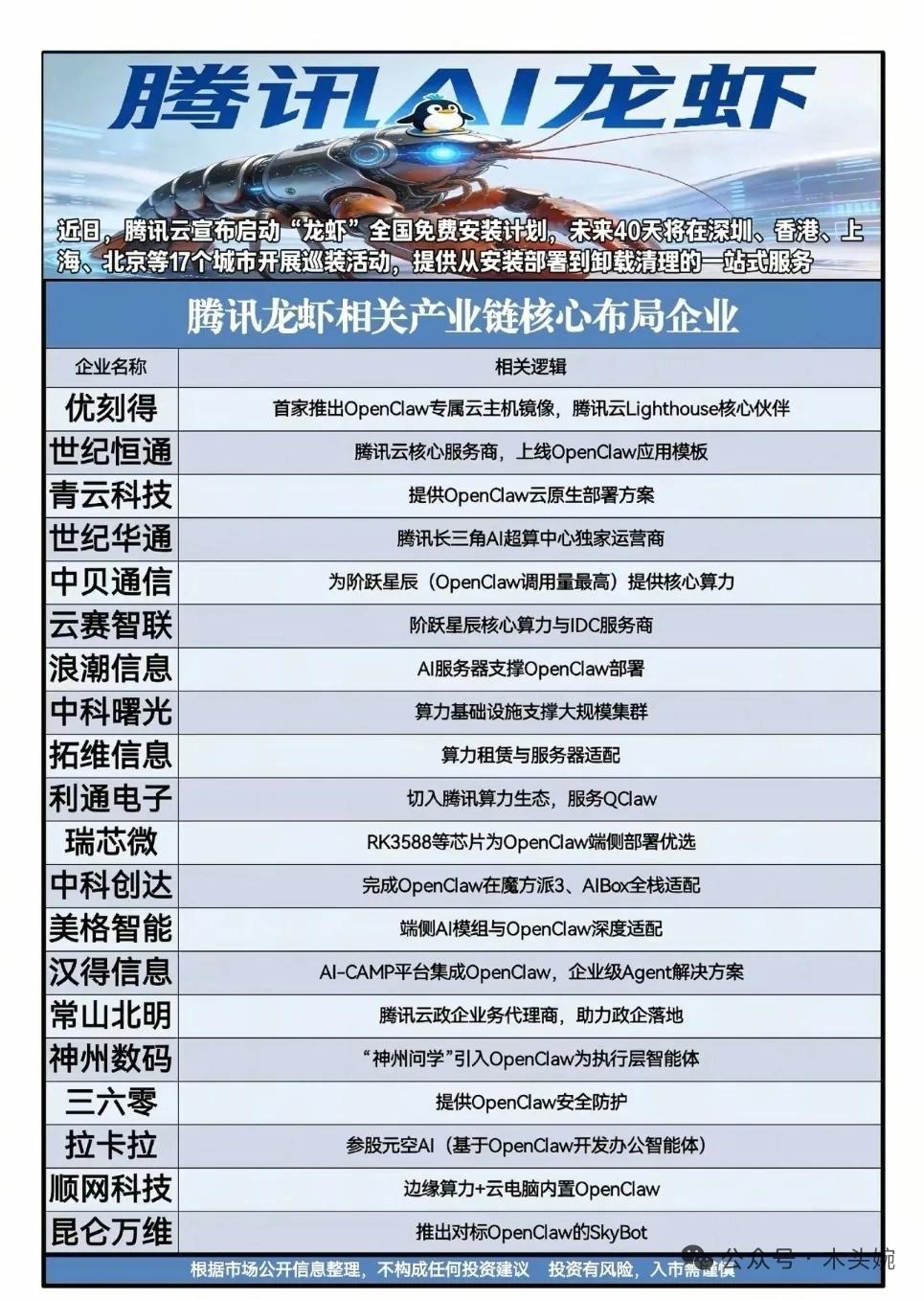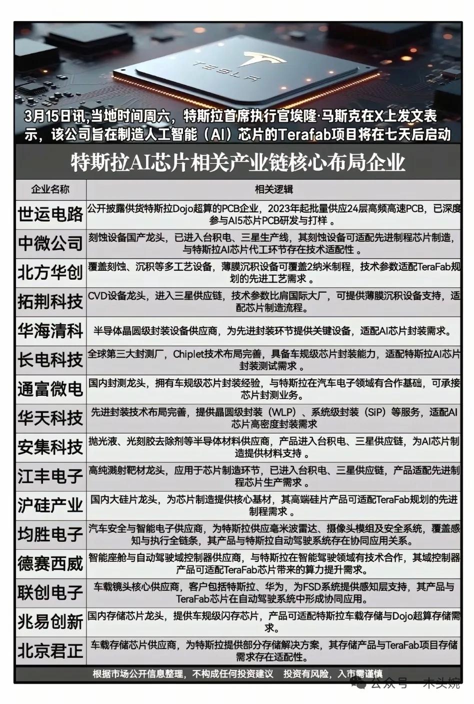 别再乱找标的了!这六条科技赛道主线才是当下市场的核心机会! 周末重磅利好:海洋经济、腾讯AI、核能装机、特斯拉AI芯片、Kimi大模型、华为合作伙伴大会等等概念持续发酵,每一条赛道都藏着关键机会。相关概念龙头代表有哪些? 海洋经济:从船舶制造、海上风电到深海养殖,全产业链龙头集结,《求是》定调下的长期发展主线。 腾讯AI“龙虾”:OpenClaw生态加速落地,算力、服务器、端侧应用全面铺开,腾讯生态伙伴迎来红利期。 核能装机:中国加入《三倍核能宣言》,三代核电+四代堆型+核聚变多点突破,设备与运营龙头充分受益。 特斯拉AI芯片:TeraFab项目启动在即,Dojo超算与自动驾驶芯片共振,半导体制造、封测、材料链同步受益。 Kimi大模型:超7亿美金融资落地,多模态应用加速渗透,算力、数据、内容合作方持续兑现业绩。 ⚠️ 风险提示:以上仅为产业链梳理,不构成任何投资建议,投资需谨慎。