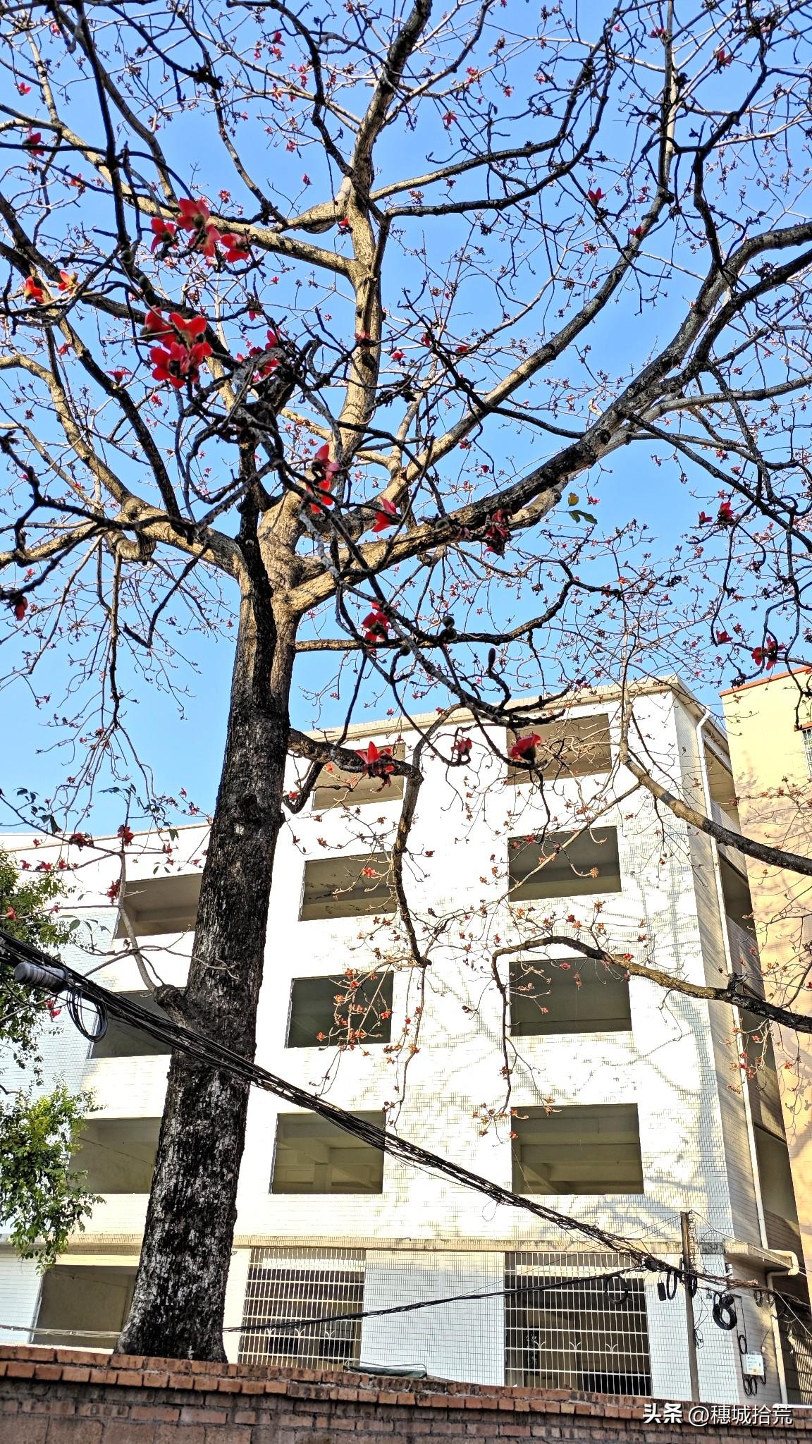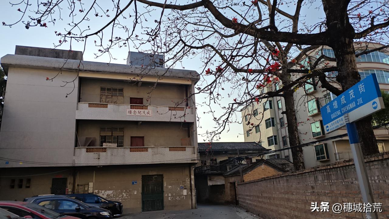 这大概是最后一次,与高增成茂街里的两棵大木棉见面。今天见面时,木棉花已大部分凋零,更显沧桑。 木棉花旁有一间面积很小的青砖瓦房,类似门岗或更楼。有种枯藤老树昏鸦的感觉,很是古朴。 进到里面是停车场,以前是晒谷场。当地人叫晒谷场为“地堂”,粤语童谣“月光光,照地堂”,指的就是这片空地。 木棉花旁还有一栋九十年代时期的“水洗石楼”(石米楼),高三层半,那个年代国家没有经费,这栋楼大概是高增村华侨捐建的,又或者是村民自发集资而建。 “成茂纪念楼”几个字贴在三楼的“拦河”上,白底瓷砖手写字,经高温烤制,非常适合广州的气候,历经这么多年,依旧清晰。 关于用途,大致猜测是当年村里戴氏族人,红白喜事,或者集体活动,大多时间是摆酒用的。 木棉、成茂楼、小瓦房、地堂这几个元素,和谐又自然。 写在最后: 人和镇高增村,是著名的侨乡,也是一座即将消失的广州自然村落。广州身边事 城中村 木棉花 高增村