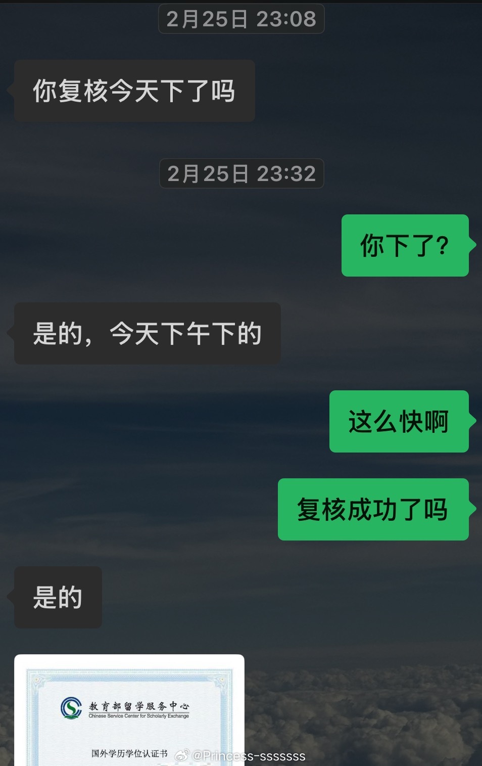 天天催人家留服中心给我认证,结果2.25正月初九刚开工就已经给我认证通过了邮件和