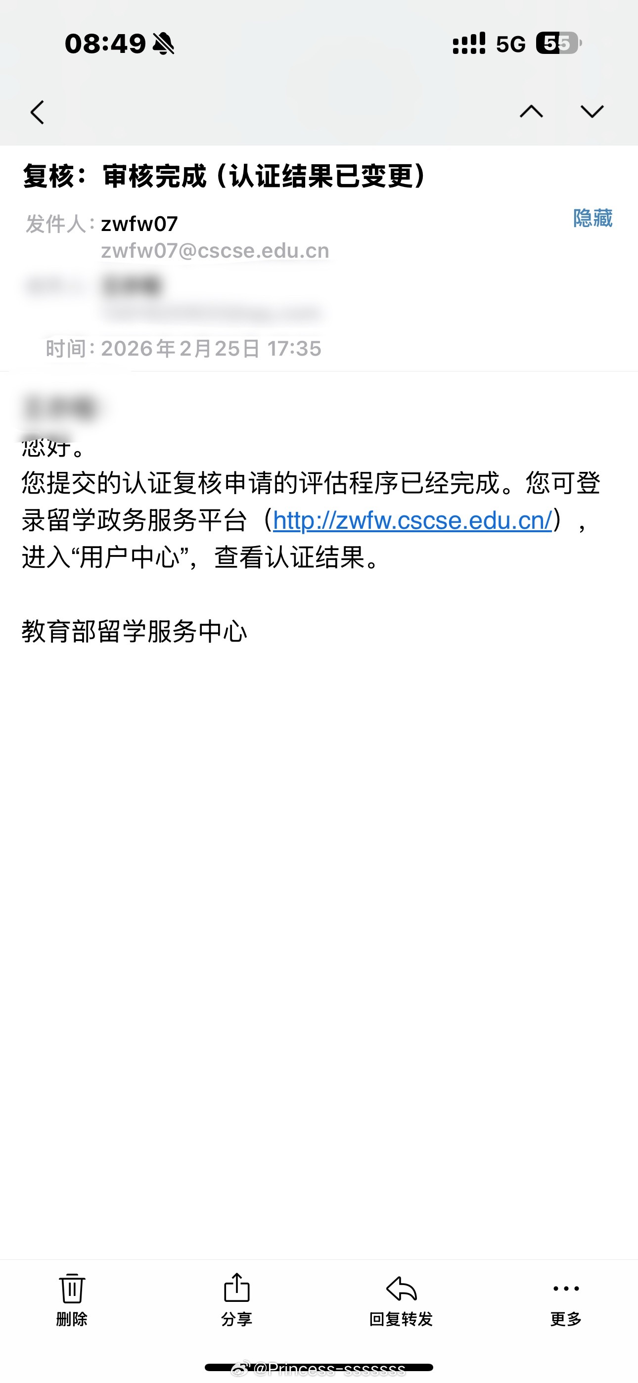 天天催人家留服中心给我认证,结果2.25正月初九刚开工就已经给我认证通过了邮件和短信我都没看到现在去翻邮件和短信还真有。。一直没点开,我服了,我怎么这么粗心