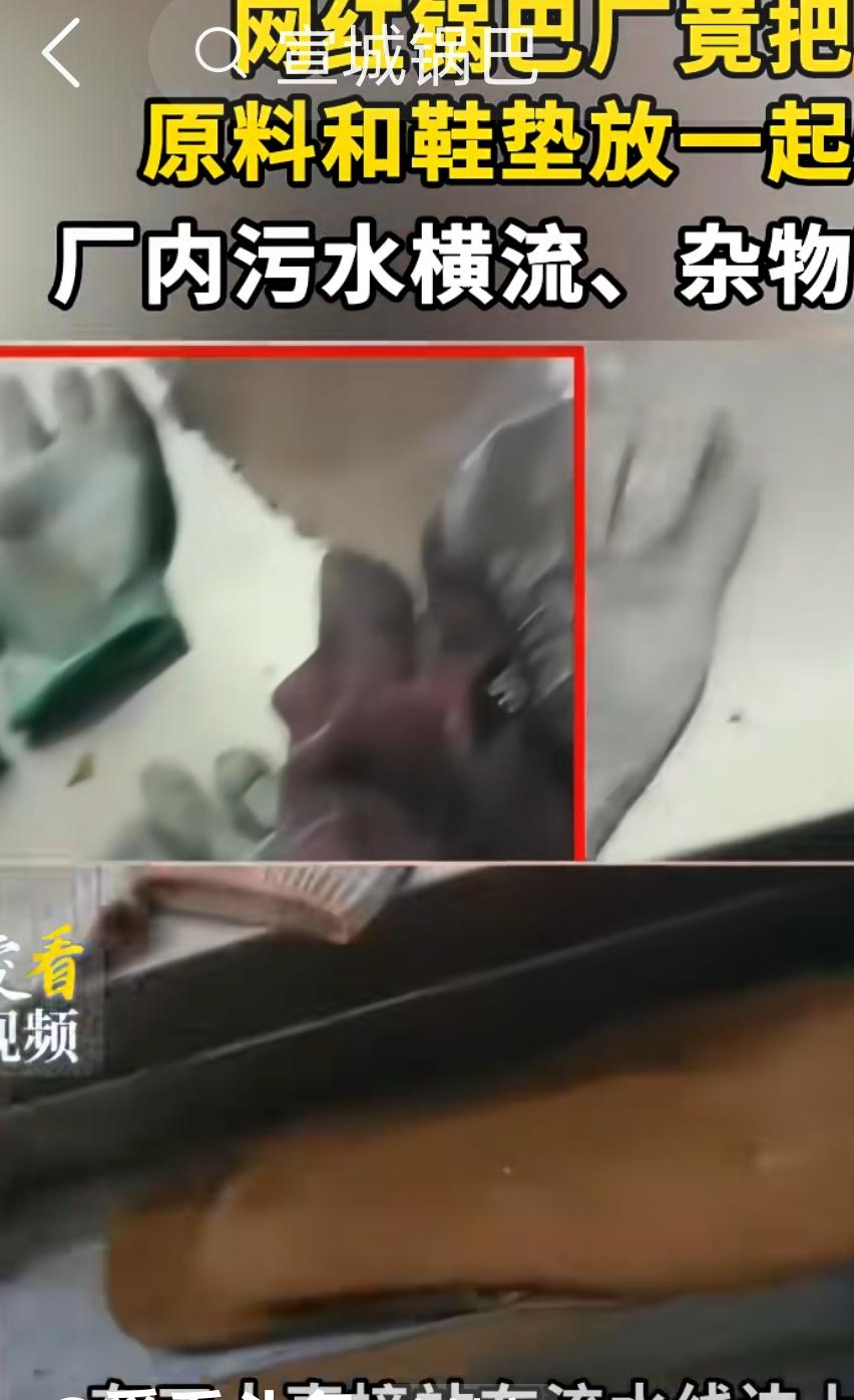 你的最爱成了全网最臭,网红锅巴和臭鞋垫同烤入味,还吃吗? 谁能想到,平时追剧、办公室常备的网红锅巴,居然是和臭鞋垫、脏手套在一个炉子里烤出来的?这种臭鞋味入了锅巴味,简直是拿消费者的健康当儿戏! ″3.15″晚会曝光的宣城这家网红锅巴厂,靠着直播间“农家土灶、手工柴火、童年味道”的噱头疯狂圈粉。镜头里温馨朴实,全是演出来的,工厂里连真正的土灶都没有,全是机器流水线,卫生状况更是触目惊心。 暗访画面让人头皮发麻,车间脏乱不堪,原料随意堆放,做好的锅巴露天放置。更离谱的是,工人的臭鞋垫、脏手套,直接和锅巴原料一起进烤箱烘烤! 脚上闷出来的臭鞋垫,带着细菌、异味和污垢,居然和入口的食品一起烤,脚臭味和锅巴味儿混合到一起,入味又入心,想想都恶心。这已经不是不卫生,是毫无底线、丧心病狂! 商家一边靠虚假宣传收割流量和信任,一边连最基本的食品安全都不管不顾,只想着赚钱,完全漠视消费者的身体健康。我们真心实意买单,换来的却是欺骗和健康风险,实在让人寒心。 好在宣城市监局已对该企业立案调查、停业整顿。就该从严从重处罚,罚到它肉疼,彻底整改,给所有黑心商家敲响警钟! 也提醒大家,别再被“手工、农家、纯天然”的噱头忽悠,网红食品一定要擦亮眼睛。食品安全无小事,我们的健康,绝不能交给没有良心的商家!
