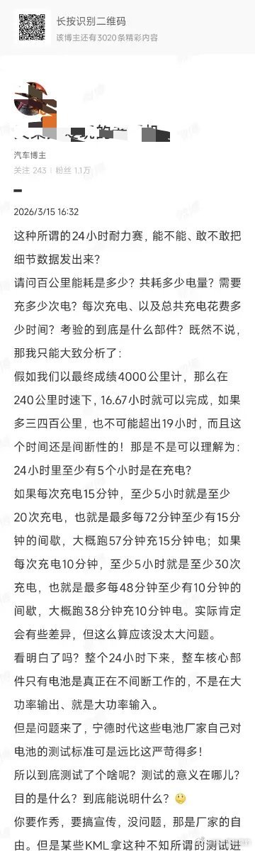 看完三位老师关于24小时耐力测试的辩论,我想说两个事实和坊间传闻事实: 1.纯电时代保时捷Taycan原型车,奔驰CLA和AMG GT XX,小鹏全新P7都做了24小时耐力测试