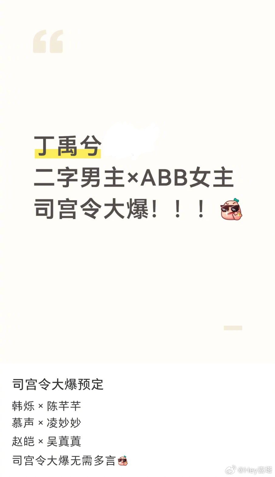 丁禹兮ABB女主出爆款丁禹兮ABB女主爆款规律 丁禹兮ABB女主出爆款!!陈芊芊凌妙妙吴蒖蒖《司宫令》已经爆款预定了丁禹兮