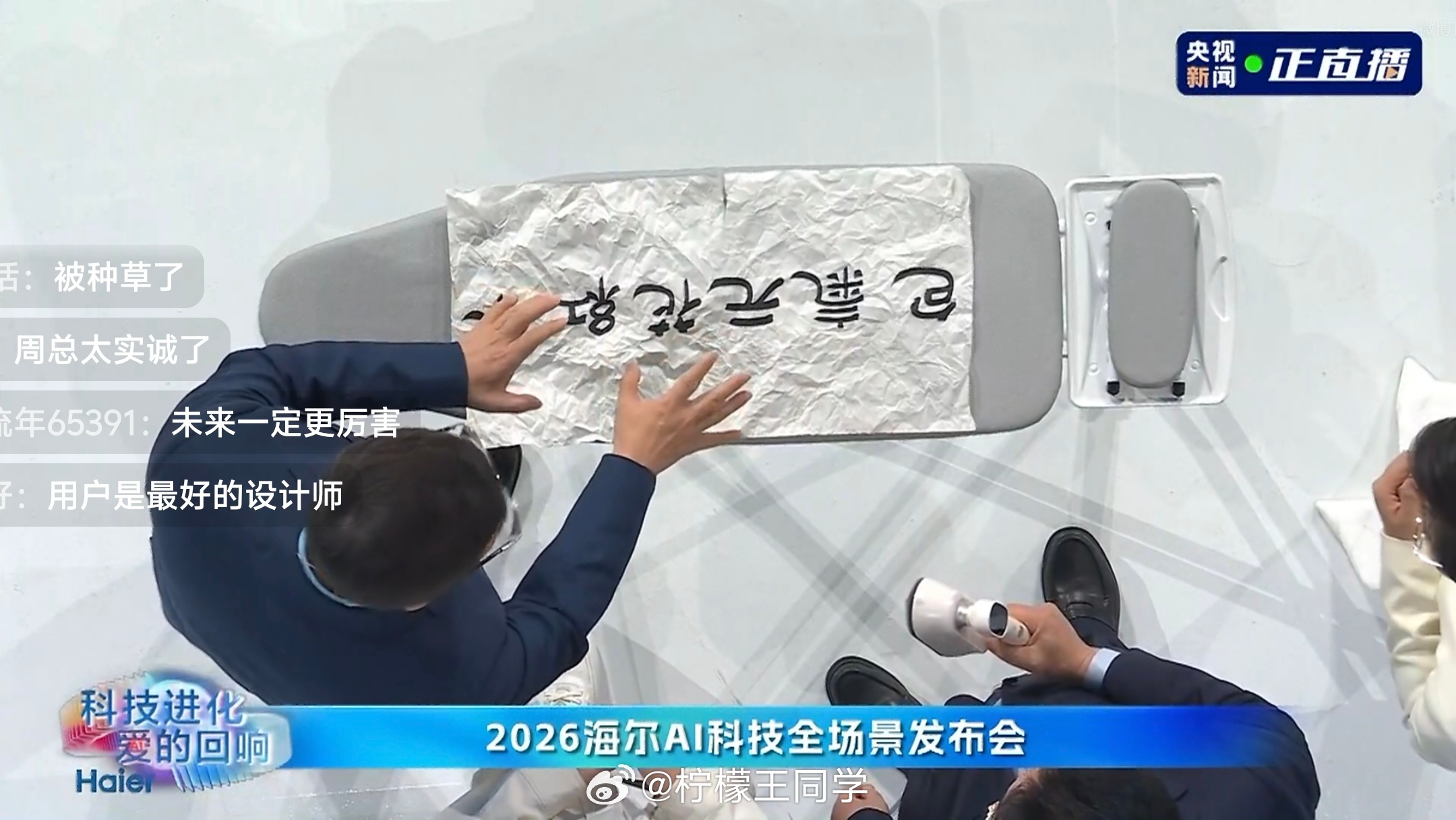 周云杰周总在实际演示自家产品时,都是库库给他上强度,测试四筒洗衣机平稳性的时候,他是“加加加”,恨不得给桶塞满了;测试熨烫机的时候,他是“揉揉揉”,给宣纸揉的我都怕他翻车。结果没让人失望,产品很能打