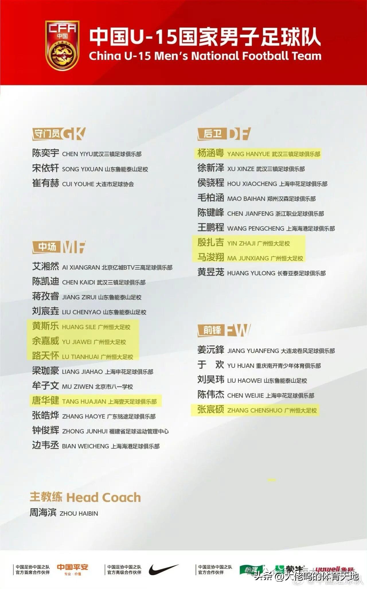 有U17有U16,现在还有U15了!所以说,@恒大足球学校 对人才的培养不仅有08黄金一届,再往下的年龄梯队也是有一众值得期待的好苗子的——3月14日,中国足协公布2026年第二期U15国家男子足球队集训名单,足校培养球员黄斯乐、路天怀、马浚翔、殷扎吉、余嘉威、张宸硕、唐华健、杨涵粤入选。 继续加油,期待培养出更多中国足球未来的人才吧[加油]