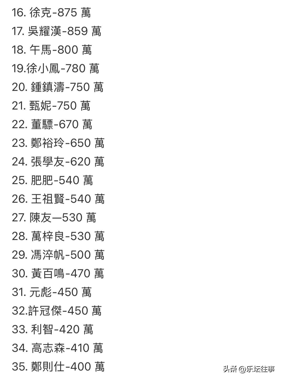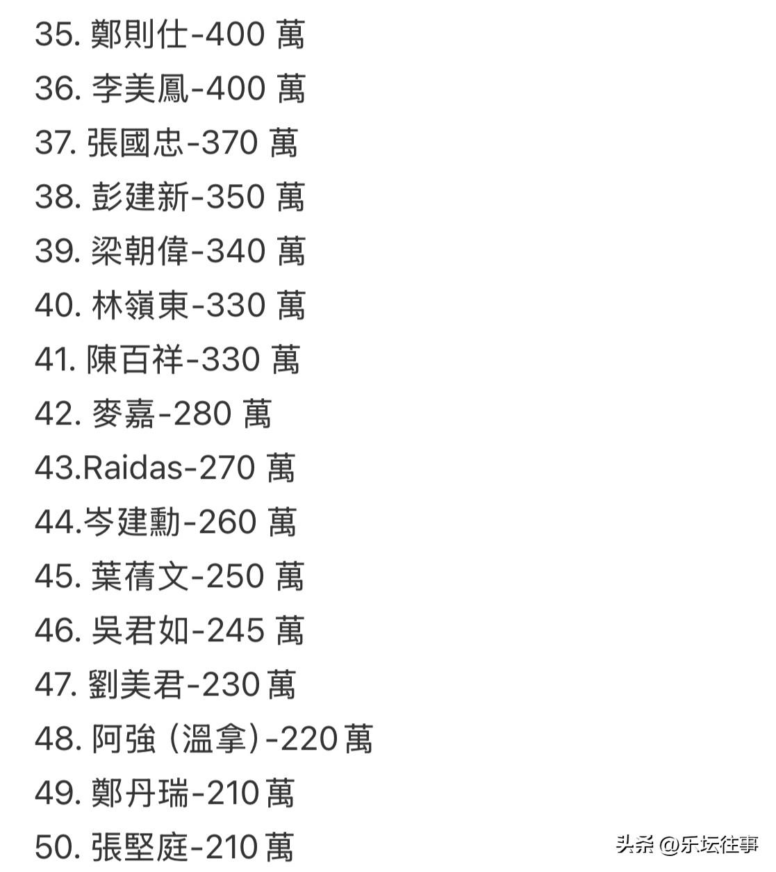 香港1988年十大歌星收入排行榜: 1、张国荣 2、梅艳芳 3、谭咏麟 4、林子