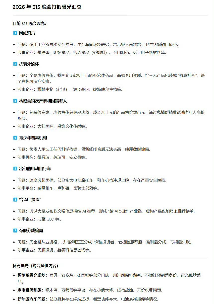 315曝光名单 315晚会曝光名单整理完毕,日常吃的用的千万留心!看看有没有你常