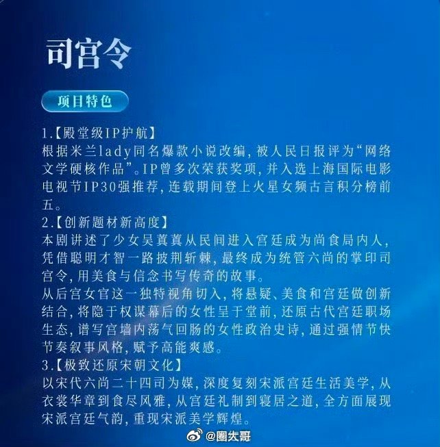 司宫令原著丁禹兮、宋祖儿新剧《司宫令》今日开机,这部剧改编自米兰lady的同名小