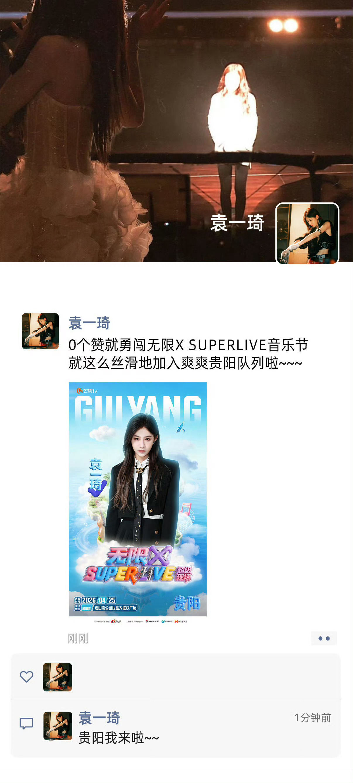 袁一琦加盟SUPERLIVE音乐节袁一琦官宣加盟「SUPERLIVE音乐节」4月