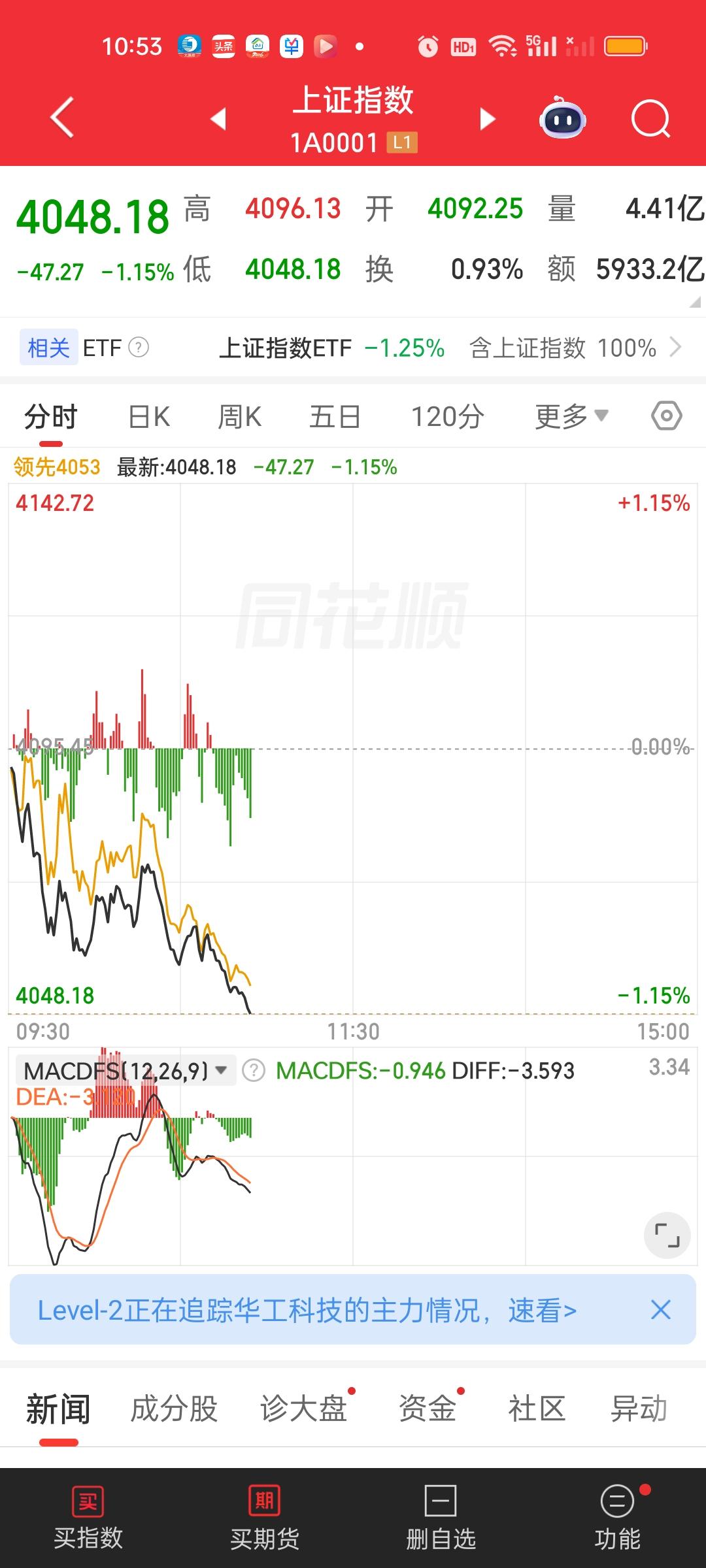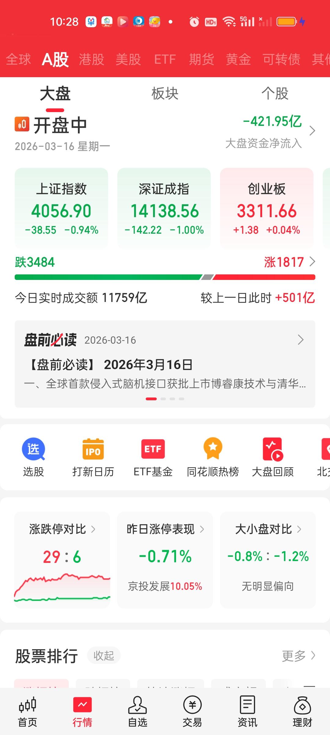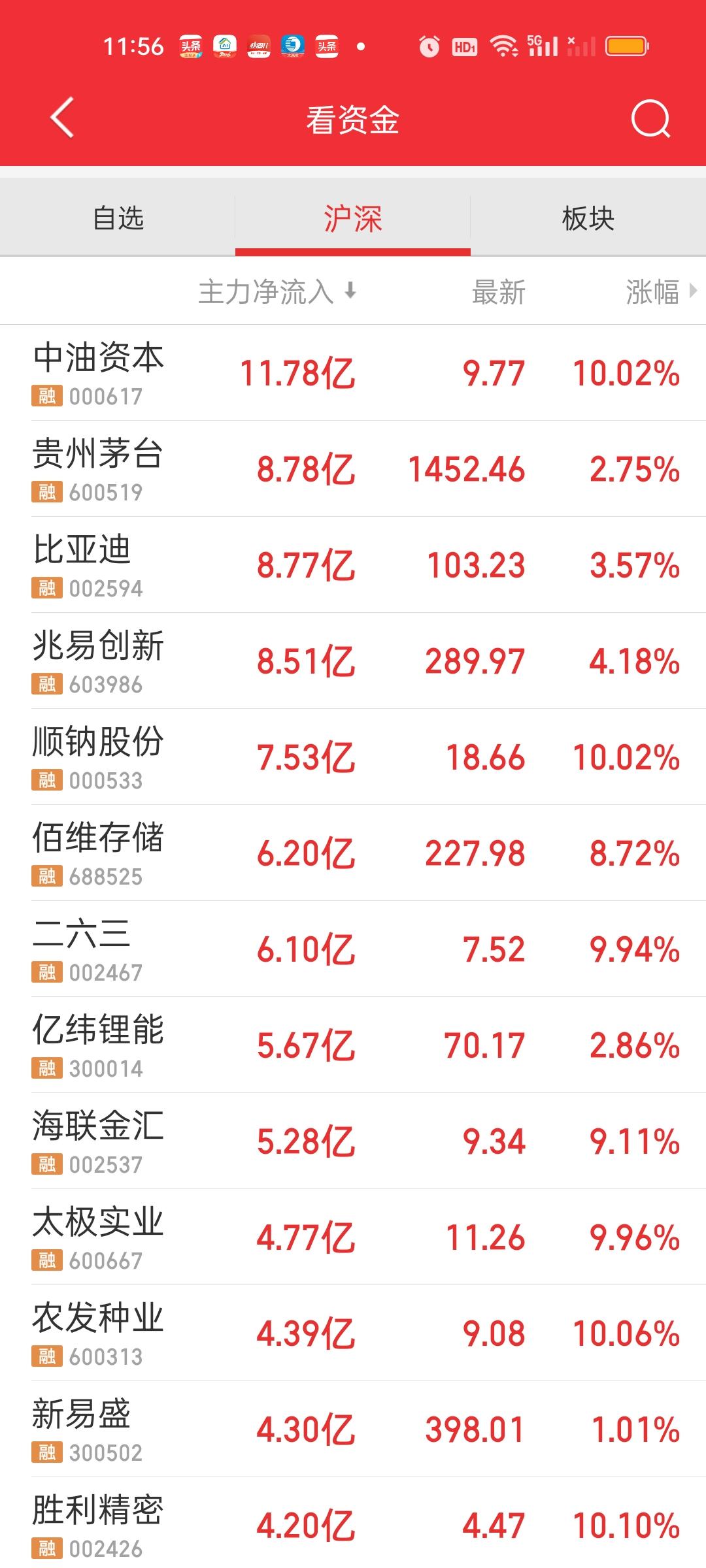 中午收盘了,收盘前半小时大盘往上拉升了一些,但这并不能表明下午就不会继续往下跌了,毕竟有3400家个股下跌。而且大盘资金净流出了近600亿。大家发现没有?下杀是放量的,但上涨变成缩量了。上午的下杀一度放量了600亿,但截止中午收盘只放量11亿了。下午会不会从放量变成缩量?我认为可能性很大。除非下午继续爆杀。这个位置爆力下杀是肯定能杀出恐慌筹码的。 主力资金净流入方面,只有中油资本净流入资金在10亿以上,股价也是强势收获涨停。主力资金净流出方面,中国电建,华工科技,紫金矿业,天孚通信净流出资金在10亿以上。