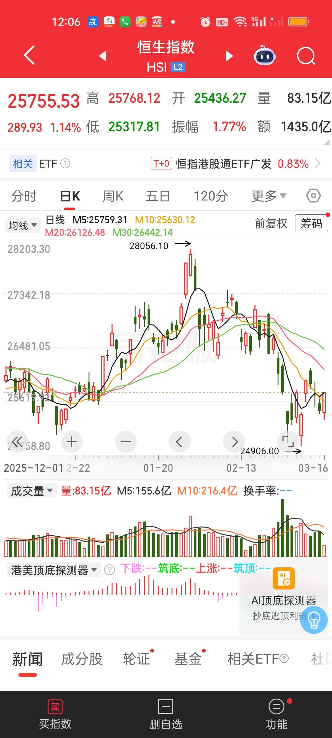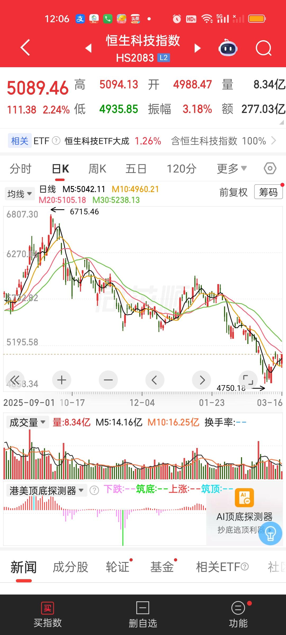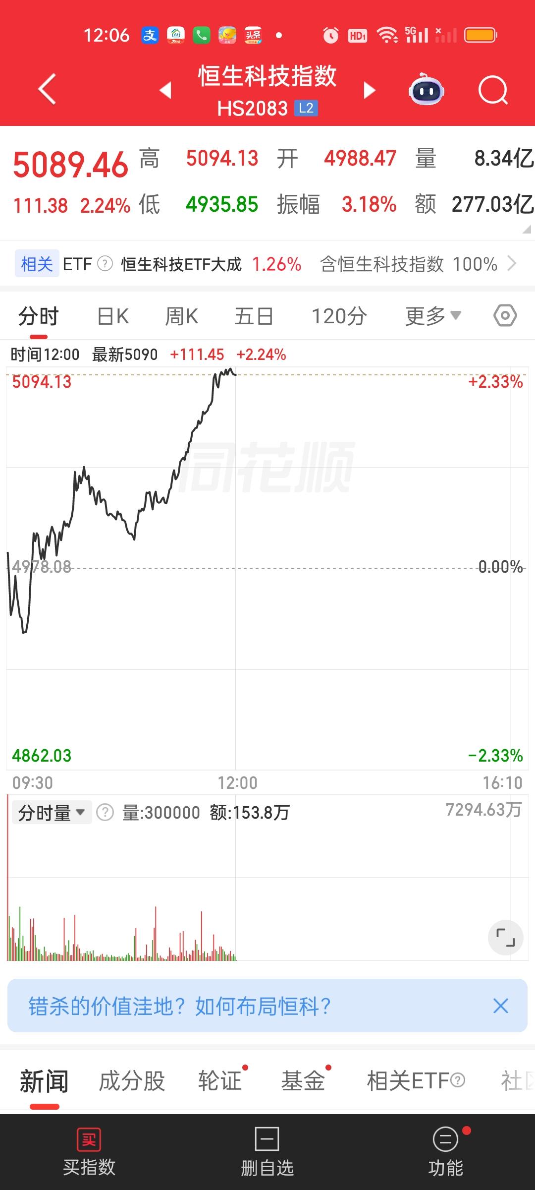 港股今天的表现要比我们强势得多,相比我们的指数全部收绿,恒指中午收盘大涨近300点。恒科中午收盘更是大涨了2.24%。特别是在我们收盘后的半个小时,它们都出现了直线往上爆拉的过程。 港股代表的是外围市场的态度,也就是说作为市场前沿,它们能比我们更早感受到外围市场的风险和利好。恒指目前依旧在所有均线下方,但恒科已经站稳5日10日线,恒科下午很有可能还会冲击一下20日线。如果可以站稳20日线,是可以先于恒指迎来上涨的!