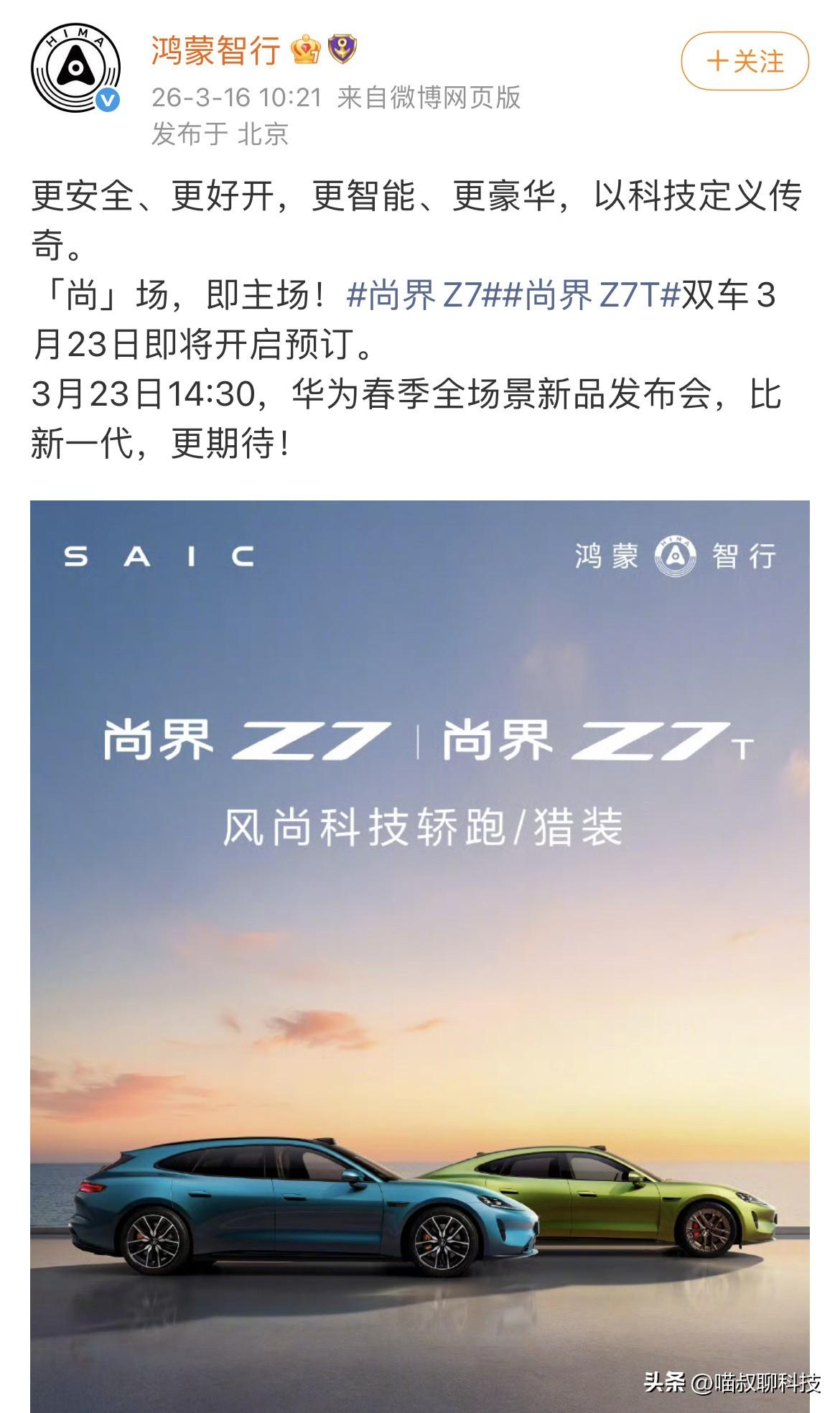 同时官宣!巅峰对决? 小米新一代SU7和尚界Z7两款颜值都相当能打的车型几乎同时官宣,发布时间也相当接近,这是真热闹哈~ 小米新一代SU7官宣词:安全、驾控、智能体验和豪华质感,全面升级; 尚界Z7官宣词:更安全、更好开、更智能、更豪华,以科技定义传奇。 不知道大伙更期待哪一台呢?