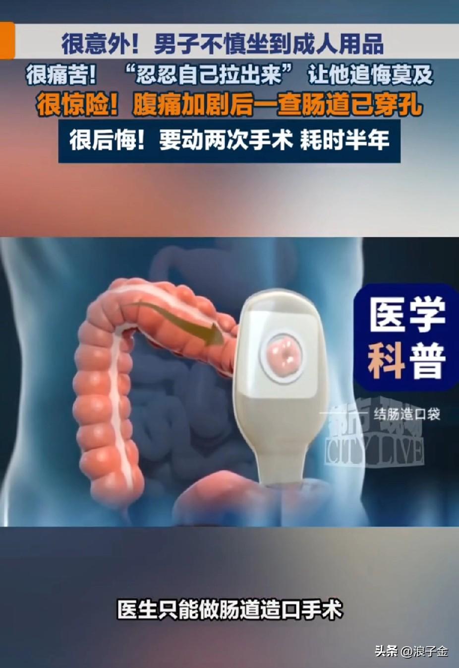 尴尬的五体投地,男子工作时候不慎坐到成人用品上,更尴尬的是,成人用品不慎滑入男子肛门里! 最尴尬的是成人用品还拿不出来!最后让男子羞愧难当的是,忍了两天,去医院检查,发现肛门完全损坏!需要做手术才能恢复! 最最要命的是,要做两次手术,耗时半年! 这半年估计男子的痛苦是难以忍受的! 写到这儿只能说,兄弟长点心吧,以后不要看到什么好奇东西就一屁股坐在上面了,会出人命的!