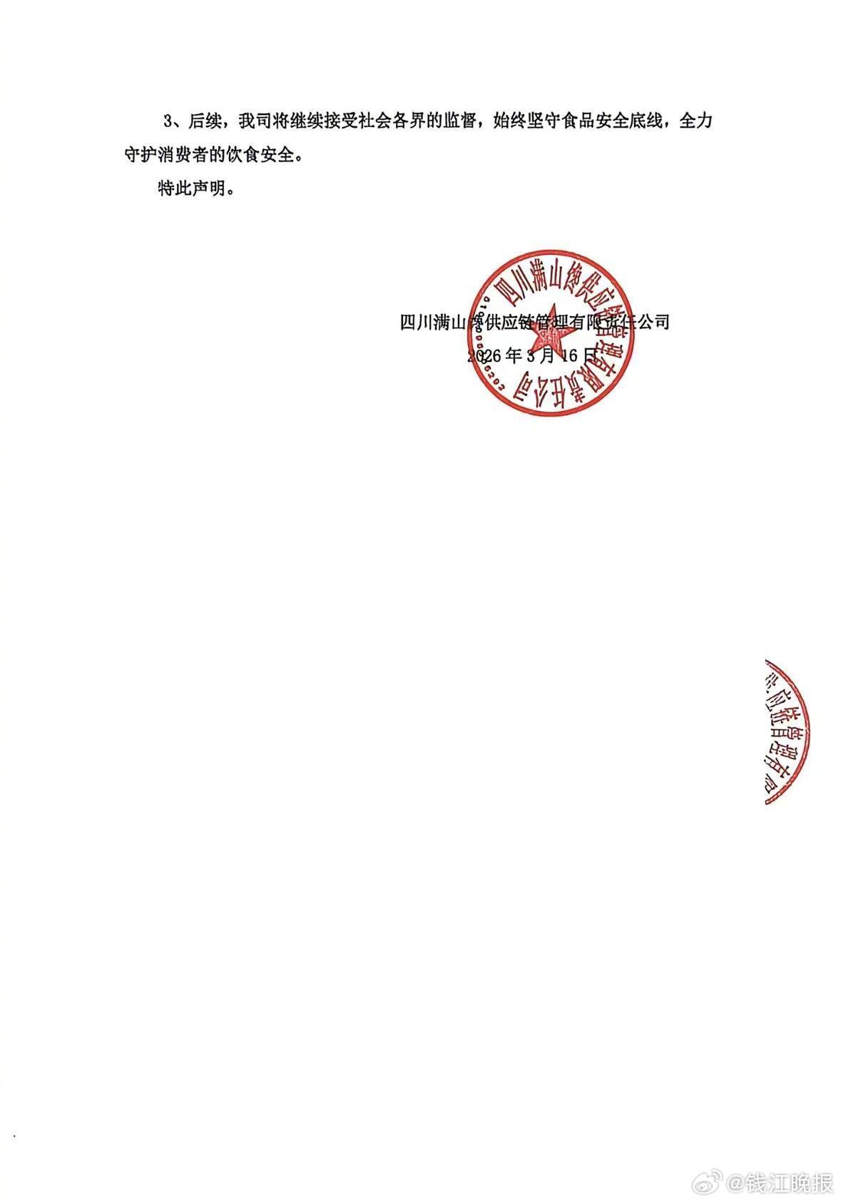 该公司已全面终止与四川省蜀福香食品有限责任公司的全系列产品合作。(潮新闻记者 张云山)