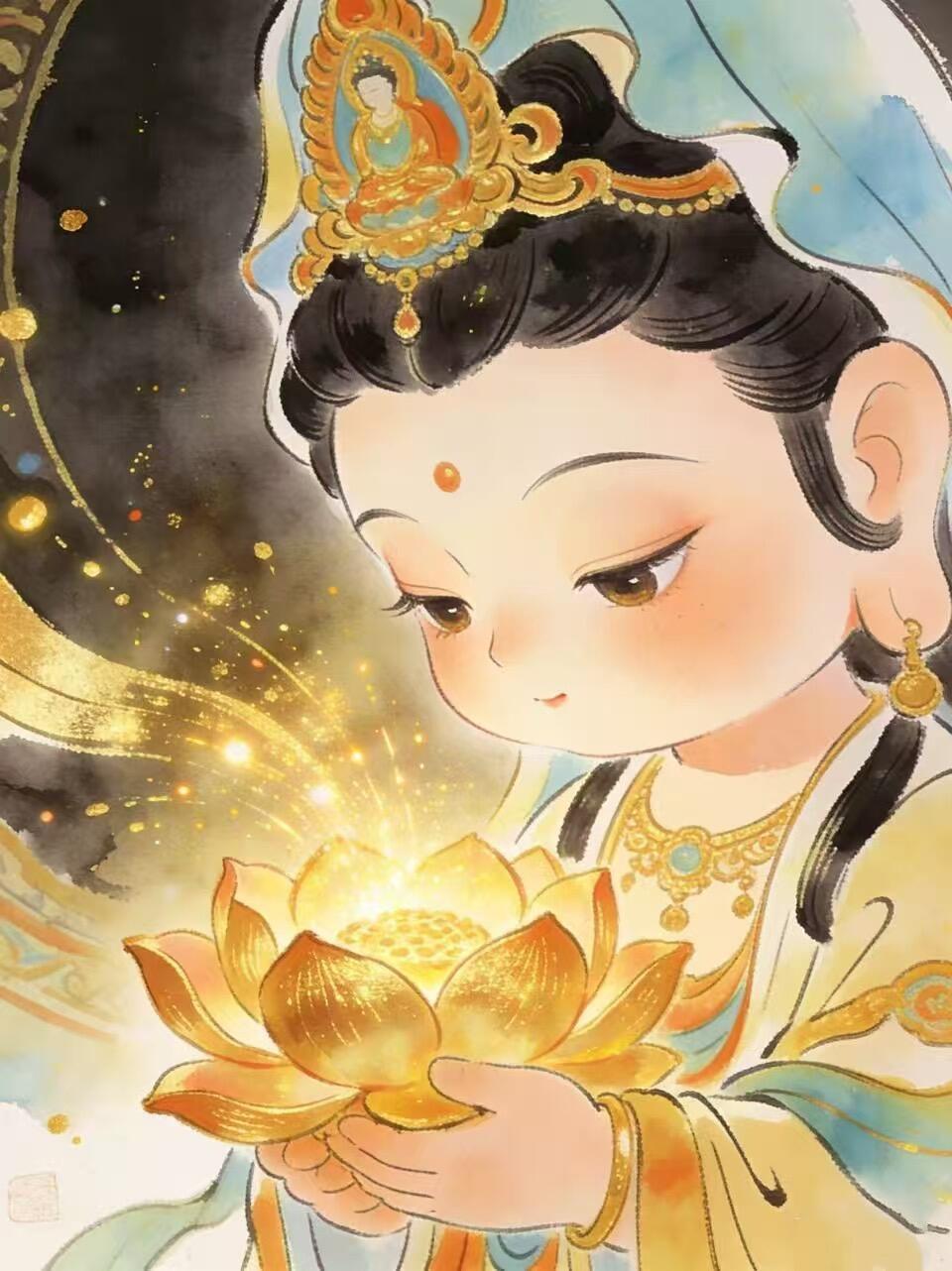 持莲念善,自有微光|佛缘头像 你看这金莲花上的光,不是凭空来的,是每一丝善念攒出来的暖意。 善终有善报,不是说要立刻得到什么,而是当你常行善事,心底会安稳踏实,身边的人也会因你的善意靠拢,日子便在不知不觉里,被福泽满满裹住了。佛相壁纸 佛缘壁纸 正念头像