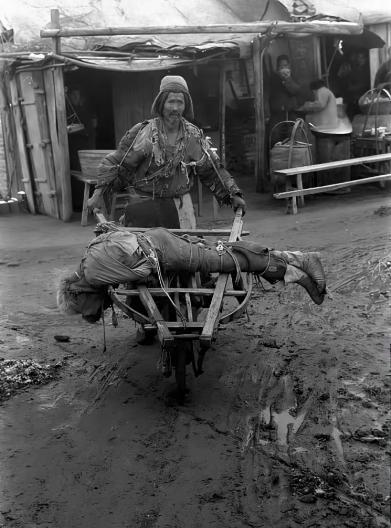看这张老照片,画面冲击力十足!1920年代,河南,一个身量高大、模样俊朗的年轻人