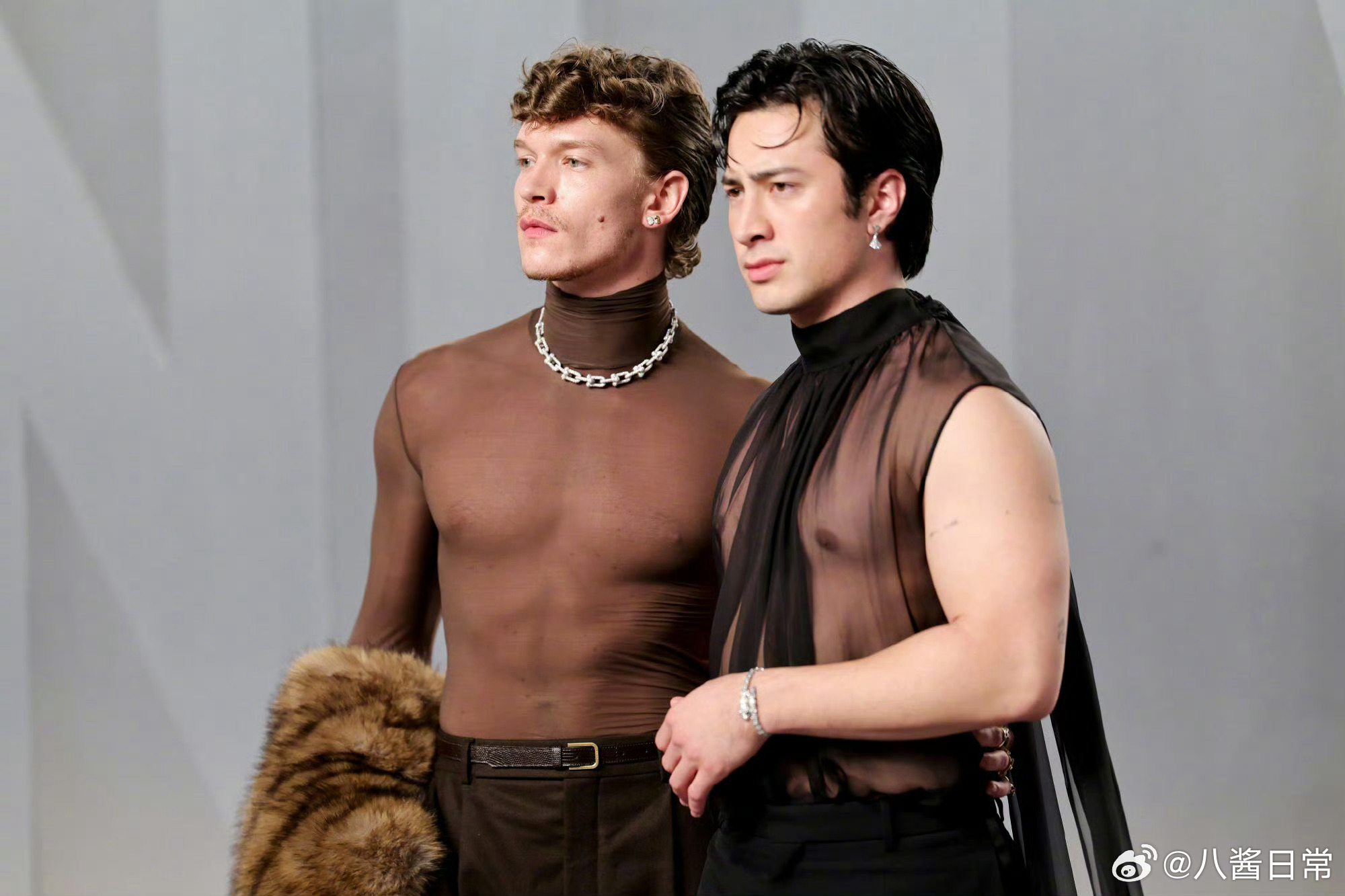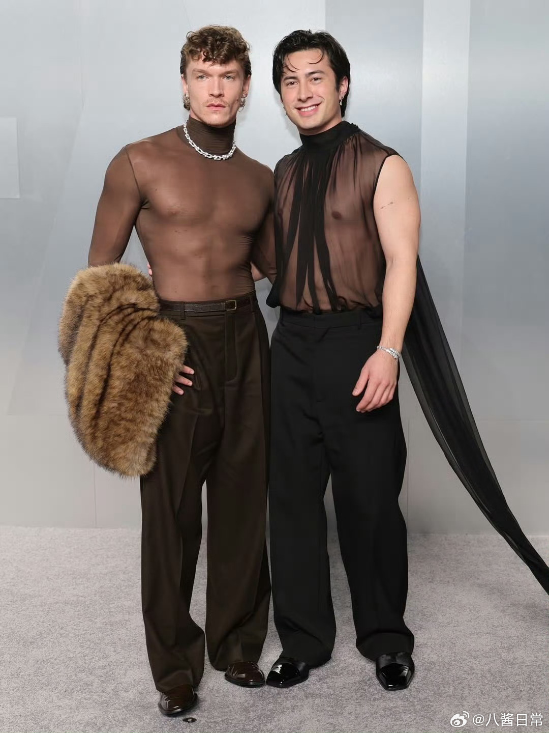 《巅峰对决》两男主穿着透视装携手登场Vanity Fair名利场奥斯卡派对