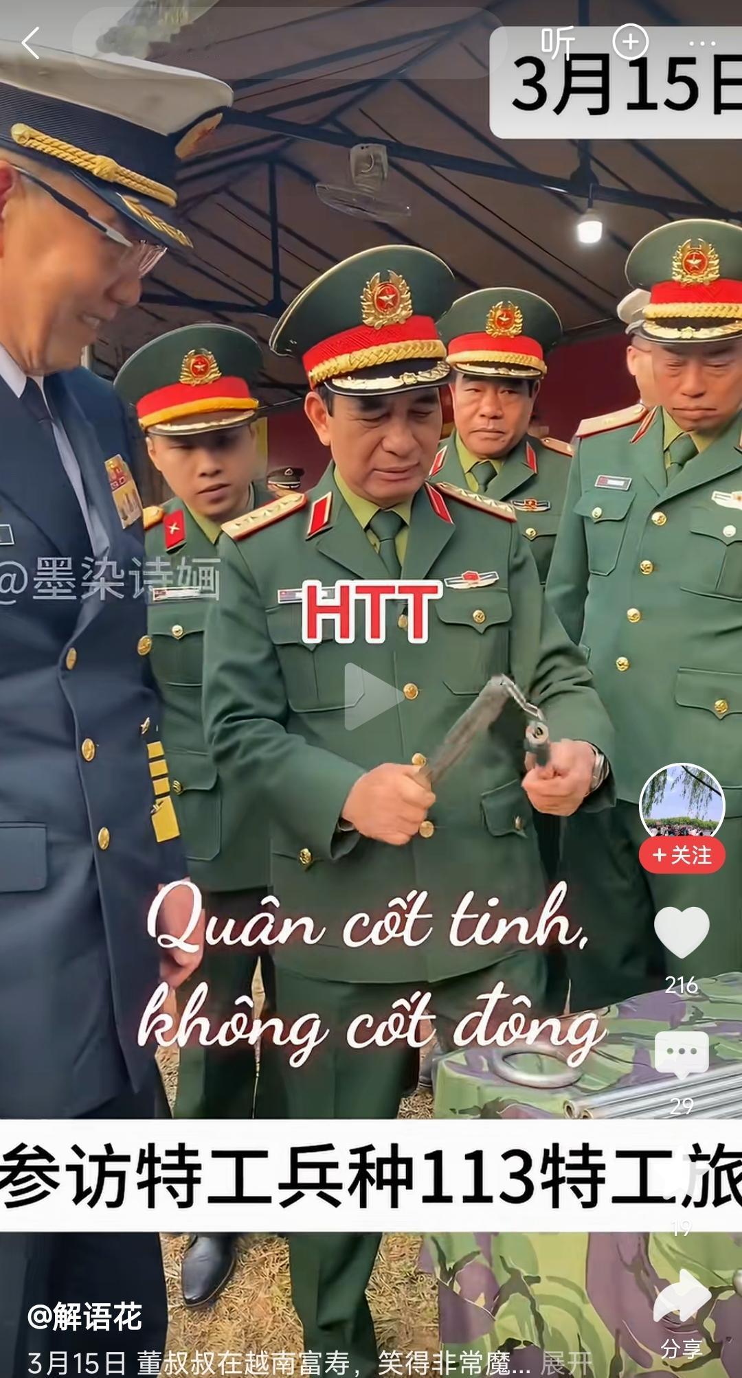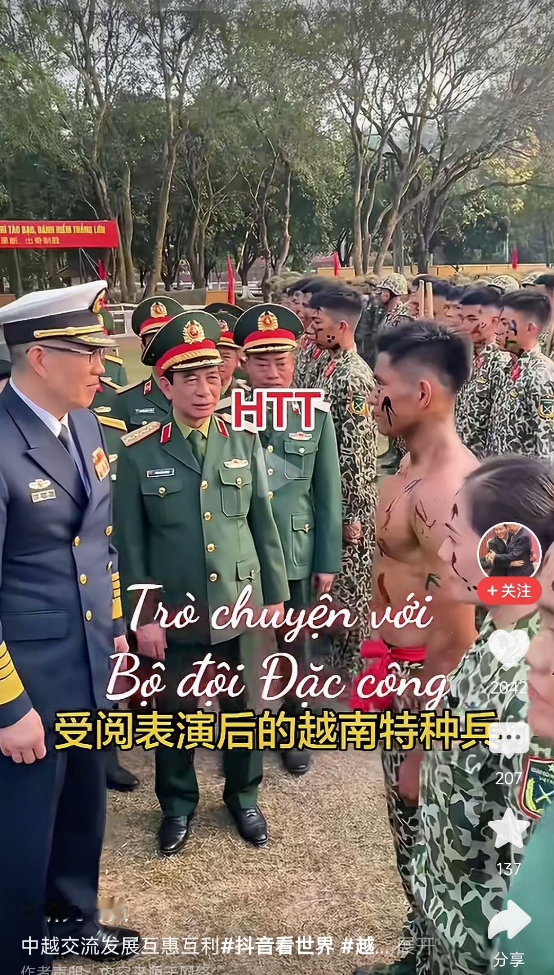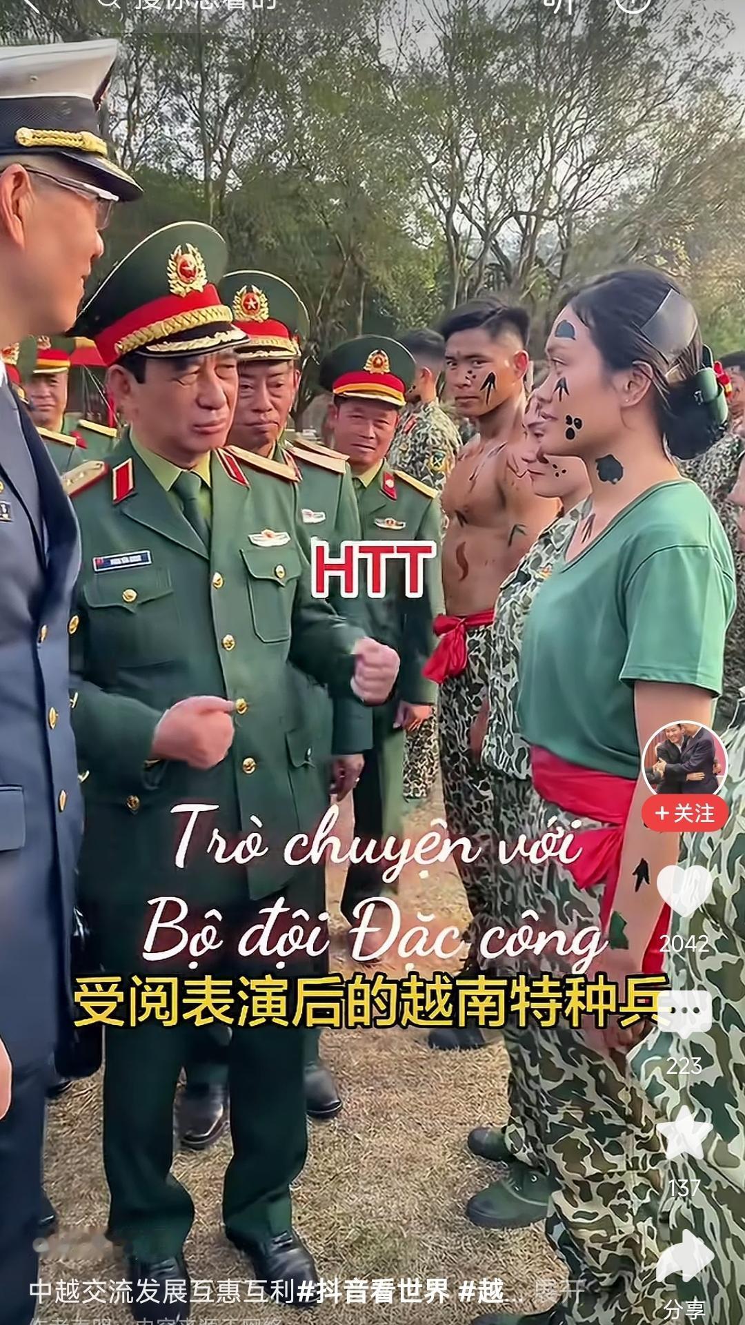 越南邀请到访的邻居,一起观看特种兵军演! 他们来到了113特工旅,观看渗透、破袭、爆破、射击等科目,一时间爆炸四起、火光冲天…… 演练后,还一起接见演练队员、展示使用器械…… 越防长手举着双截棍,眼瞅着赤膊上阵的小伙,陷入了沉思。心说:你要学李小龙啊?这不班门弄斧吗? 后边这些女兵才厉害呢!当年,咱们的战士没少吃亏,假如有一天真在战场上相遇了,一定要小心点啊![赞][赞][赞]