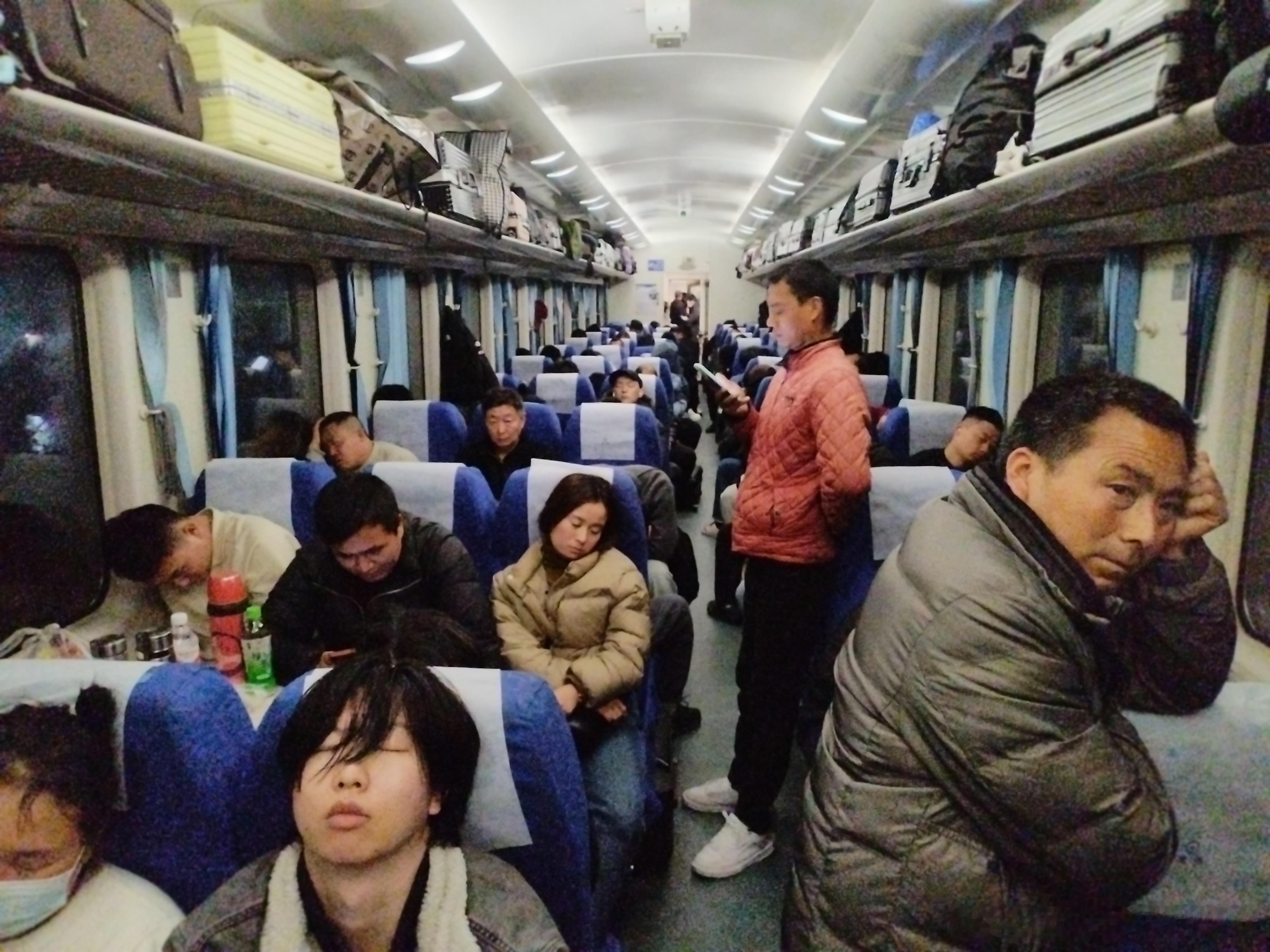 春运已过,以为车上人少,坐绿皮火车往上海跑。十堰至南阳还能横躺,南阳以后,人上满,尽管硬座有座,无奈人多,逃向餐车,晚餐花32元,夜宵再花50元,总算2026年3月16日一早熬到上海火车站。