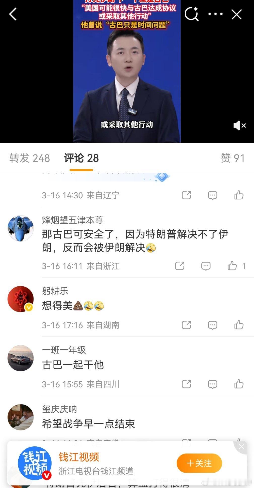 那古巴可安全了,因为特朗普解决不了伊朗,反而会被伊朗解决