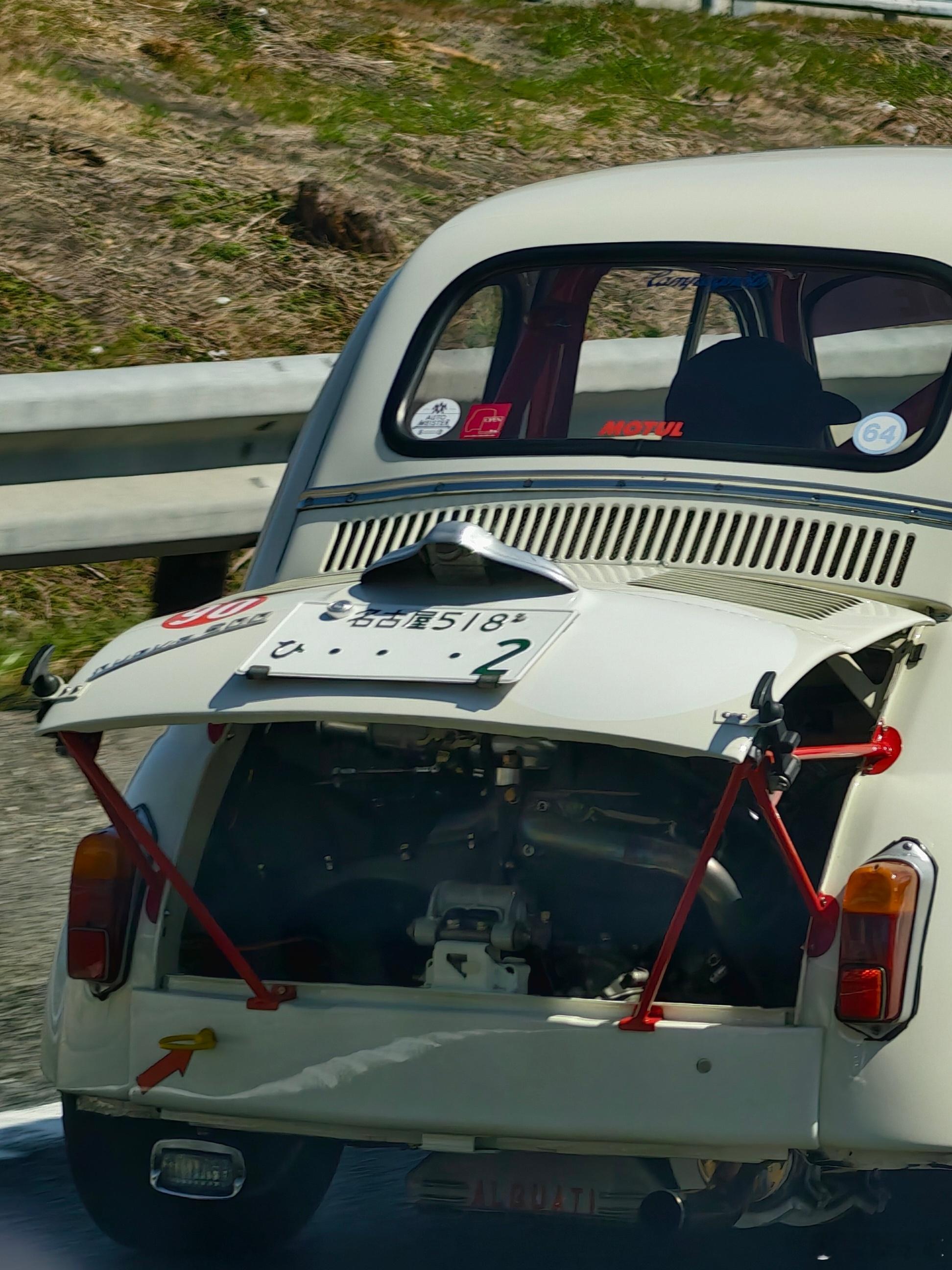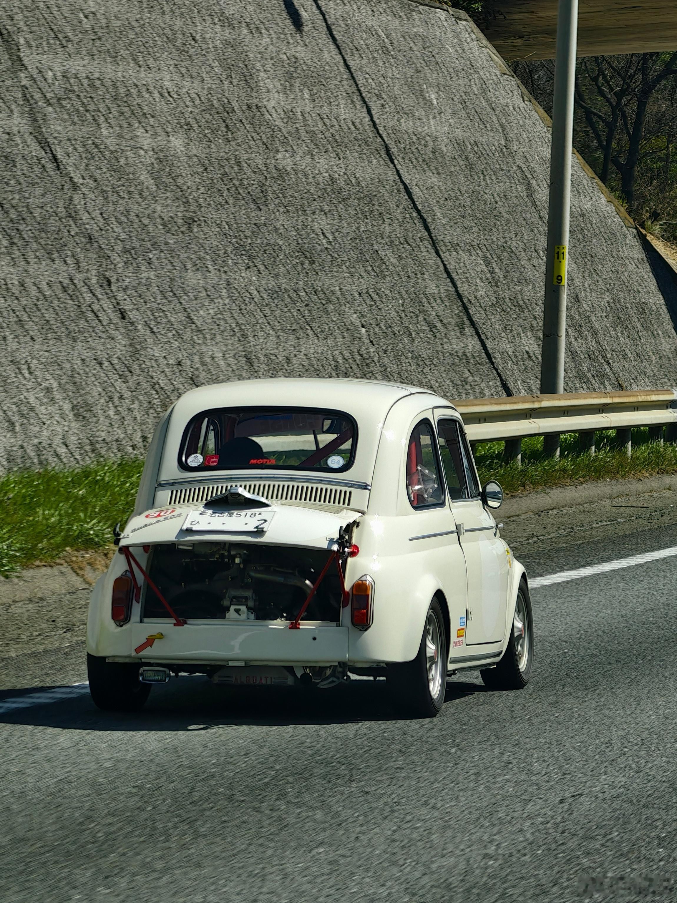 型车街拍偶遇老菲亚特500。车尾发动机舱盖是撑开的,不是开锅了。因为这车是后置风冷双缸发动机,散热全靠气流,舱盖稍微打开一点,散热更好,顺便还能给化油器多一点空气。防滚架、竞技轮圈、Motul 和 Weber 的贴纸,看细节绝对是赛道瓷。别看马力小,这车整备质量只有500多公斤,赛道非常好玩。