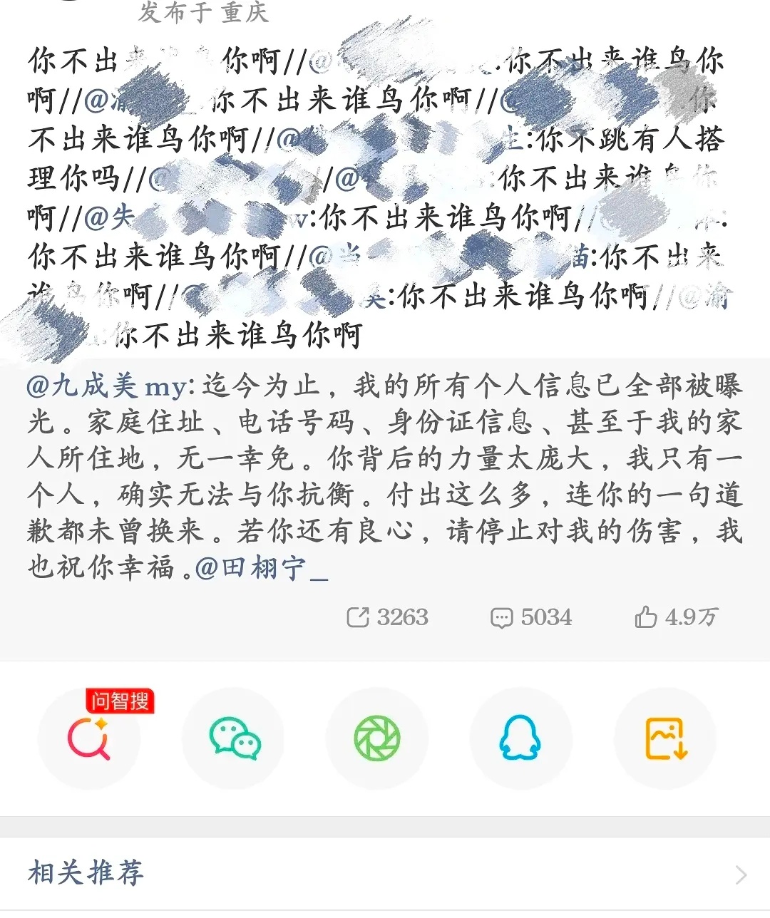没有哪个正常人看了会不生气。女生唯一做错的事情就是爱错了人,被伤害了出来求一个公道求一个道歉,男的装死不回应,粉丝替渣男冲锋陷阵开盒网暴女生,然后说这都是你自找的,你不出来求公道,我们怎么会网暴你呢……