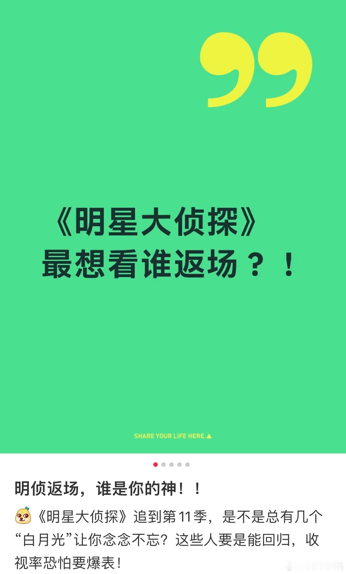 天哪,鬼鬼吴映洁在“大侦探最想看谁返场”的帖子下评论:我也是期待的!!!