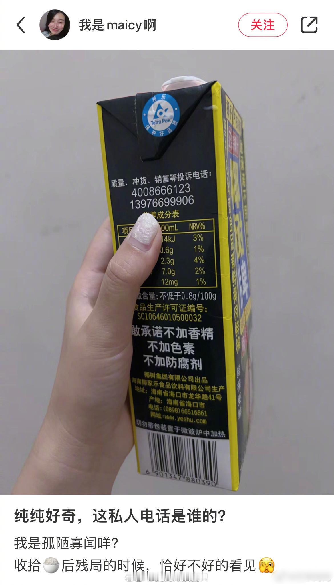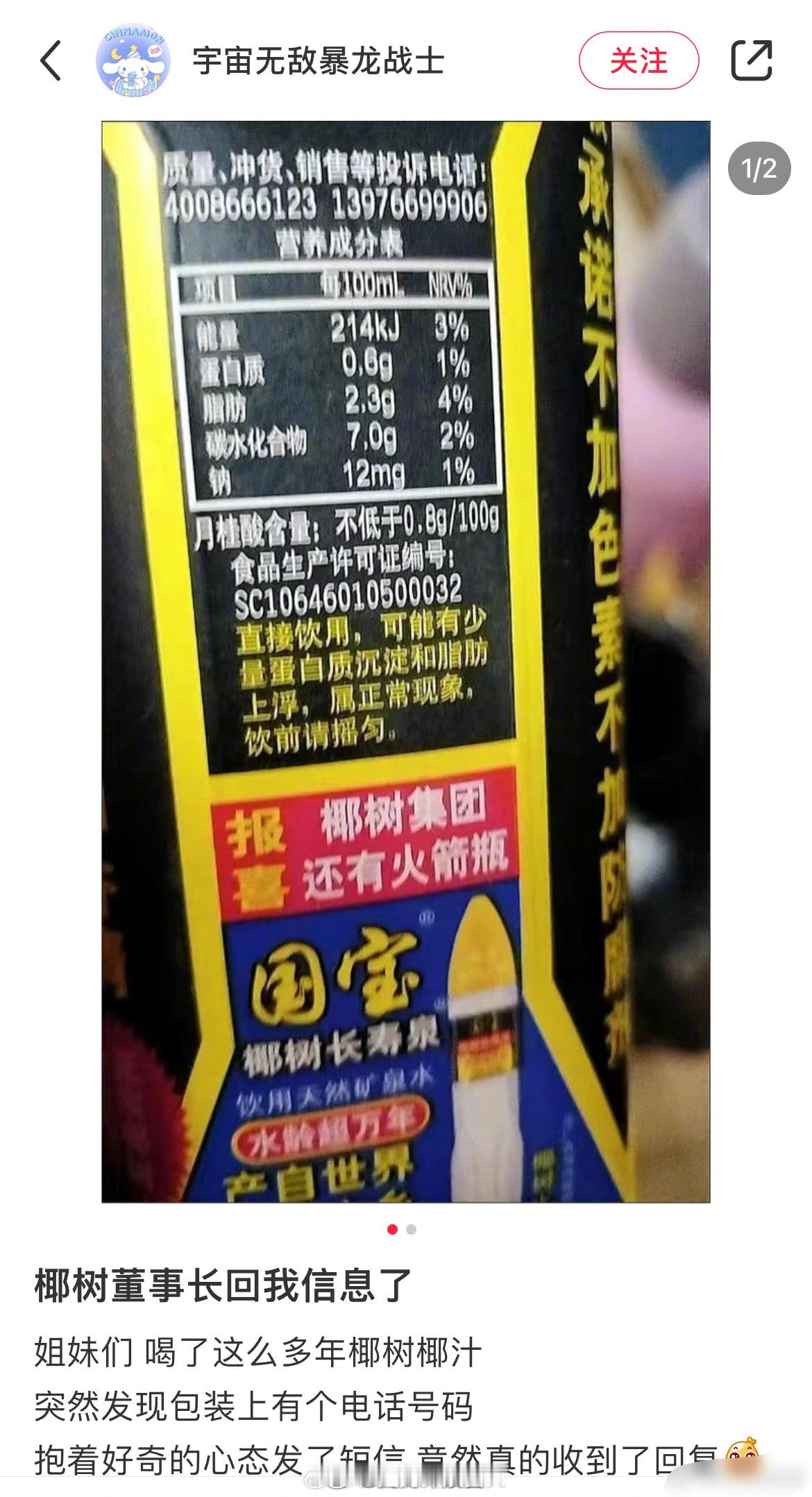 突然刷到有网友联系椰树老板,老总不仅回复了,电话还印在瓶子上,我查了下…竟然真有