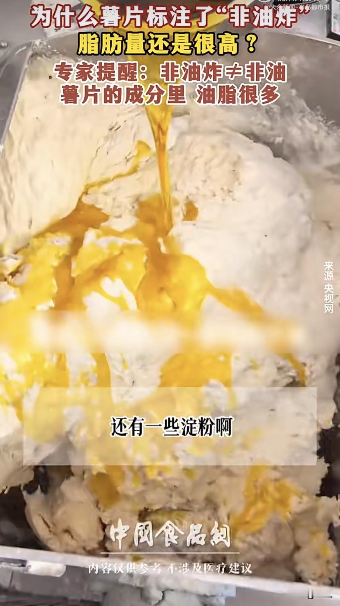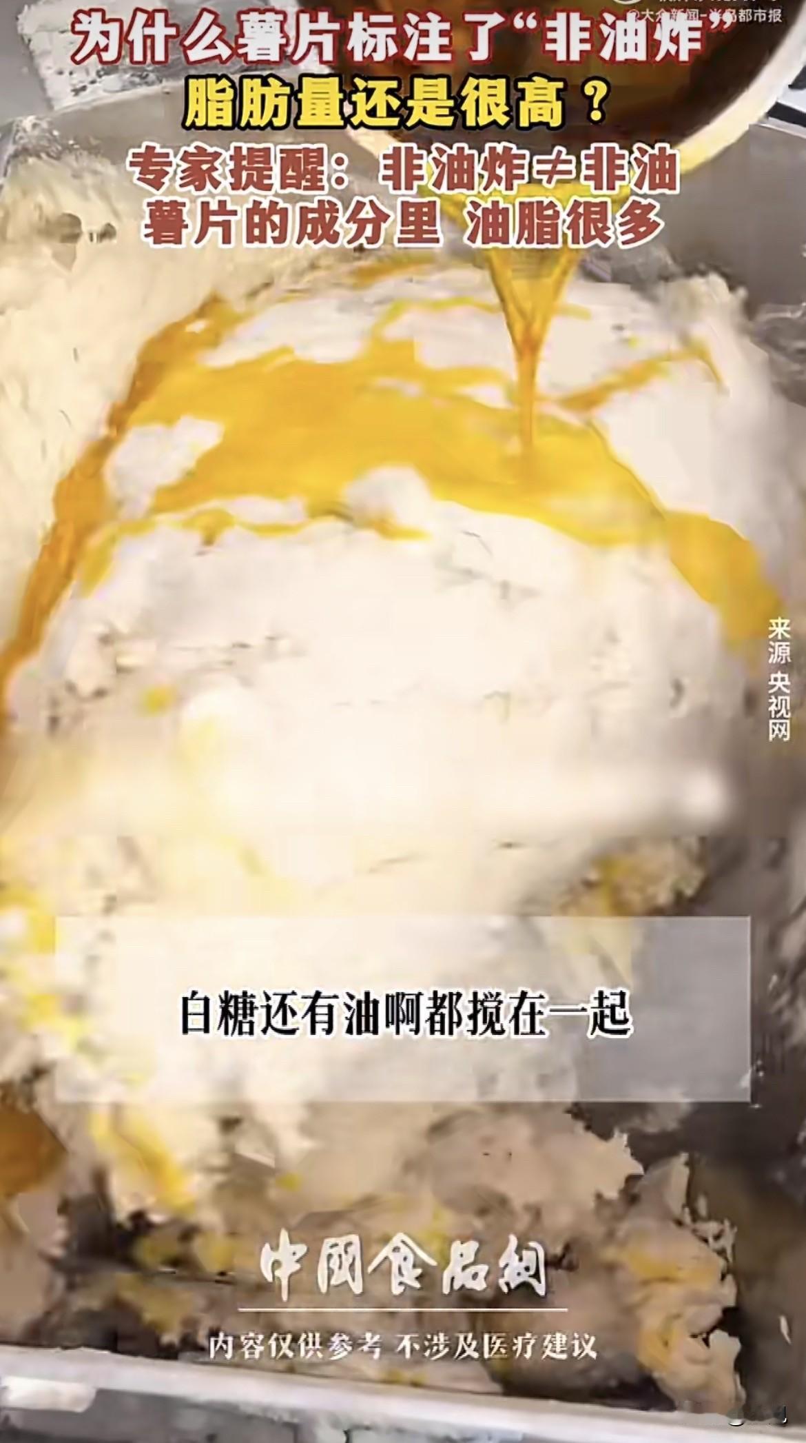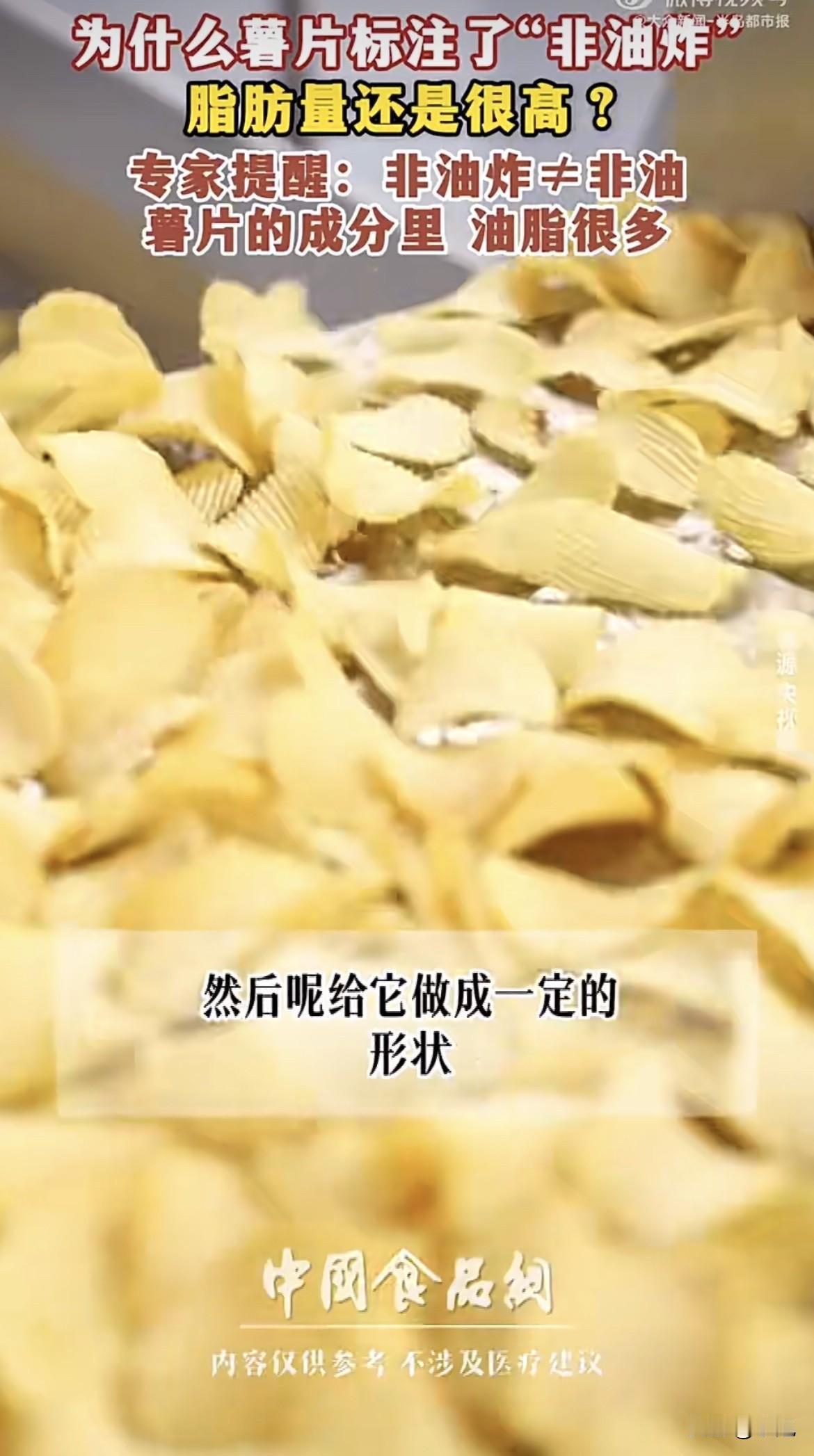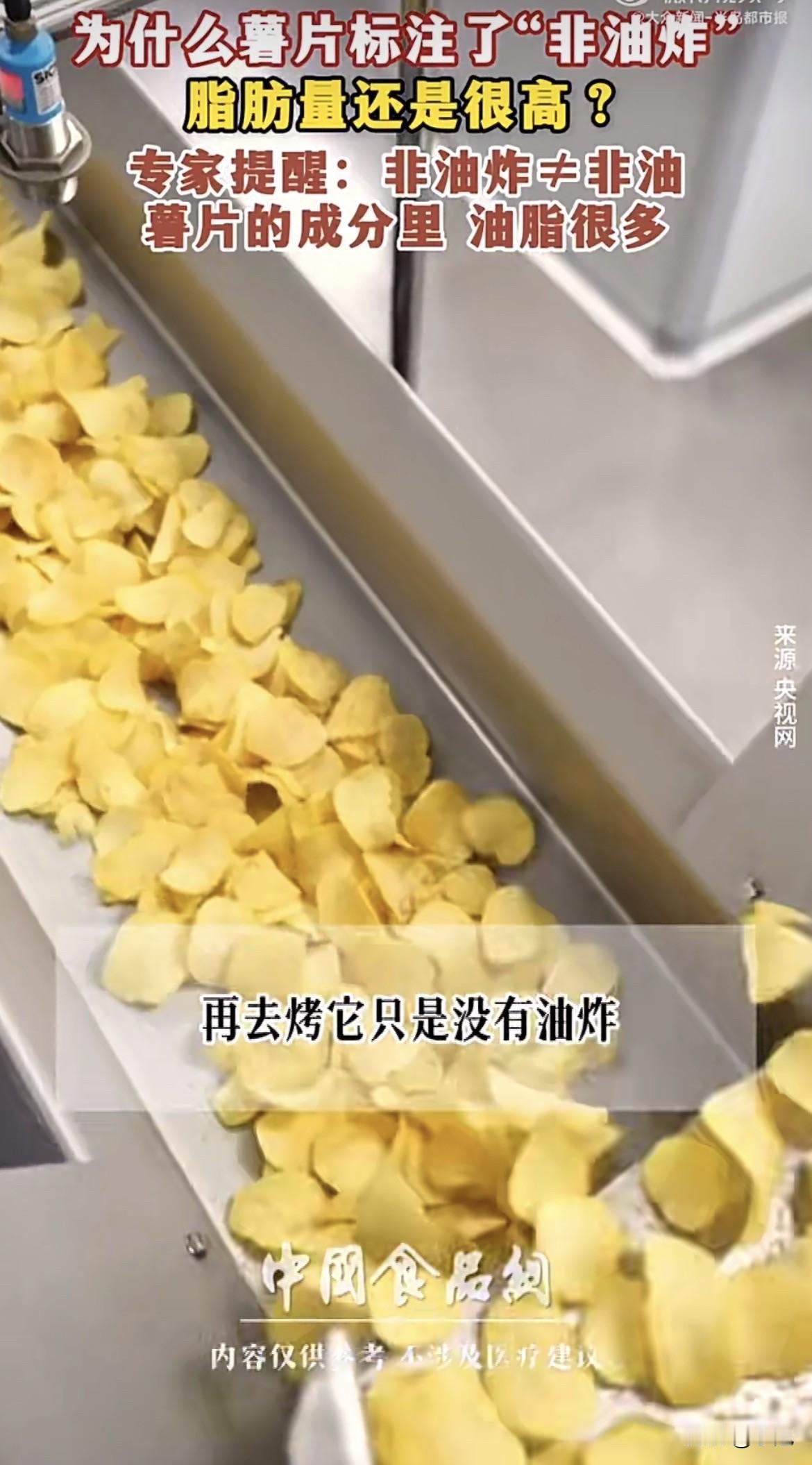 超市货架上,那袋写着“非油炸”的薯片,价格比旁边普通薯片贵了好几块。拿起来看看包装,清新自然,看着就健康。 翻过来看配料表,排在第二位的,明晃晃写着起酥油。再看营养成分表,100克里脂肪含量25.8克。 不是说非油炸吗,油从哪来的。 去问了做食品加工的朋友,他说这是最常见的文字游戏。非油炸确实没下油锅炸,但油在进烤箱之前就加进去了。 做法是这样的,先把马铃薯碾成粉,加上淀粉,再加上油和糖,搅成糊糊,用模具压成薄片,再送进烤箱烤熟。 油从一开始就在里面了,烤的过程只是把水分带走,油一点没少。 有个食品专利文件写得明白,非油炸薯片的配方里,植物油是明确写进去的配料。还有一份专利,详细描述了喷油的步骤,薯片烤干之后,还要再喷一层油上去,保证口感酥脆。 朋友说,不加油根本做不成薯片。马铃薯本身脂肪含量只有0.2%,要是真不放油,烤出来的就是土豆干,硬得能硌掉牙。 为了让非油炸薯片吃起来像薯片,必须加油,而且不能少加。有机构做过检测,非油炸薯片的脂肪含量在25%到30%之间。比油炸的低一点,但一包下去,一天油脂摄入的配额就用掉将近一半。 还有个事更让人意外。2020年深圳消委会测了15款薯片,发现非油炸的焙烤型薯片,丙烯酰胺平均含量3441微克每公斤,比油炸薯片的547微克高出好几倍。丙烯酰胺是啥,高温加工食物容易产生的物质,2A类致癌物。非油炸为了达到酥脆口感,烘烤温度和时间都得加码,这东西反而更多了。 再看盐。非油炸薯片100克里含钠1.98克,换算成盐差不多5克。中国居民膳食指南建议每人每天盐不超过5克。也就是说,吃完这袋薯片,今天的盐指标就用完了,别的啥也不能吃。 包装正面大大的“非油炸”三个字,吸引人买。真正重要的信息,藏在背面的小字里。 买零食的人,有几个会蹲在货架前仔细研究配料表。都是看到非油炸就扔进购物车,以为这回吃得健康了。 朋友说,不是不能吃,是别冲着健康去买。想吃就吃,知道自己在吃什么就行。 你把那袋薯片放回货架,又拿起来看了看背面的营养成分表。25.8克脂肪,旁边标着NRV43%,意思是吃100克,一天脂肪摄入量的百分之四十三就没了。 旁边站着个大姐,也在挑薯片,拿起非油炸的看了看,又放下,拿了另一包。 她应该没看配料表,只是觉得贵。