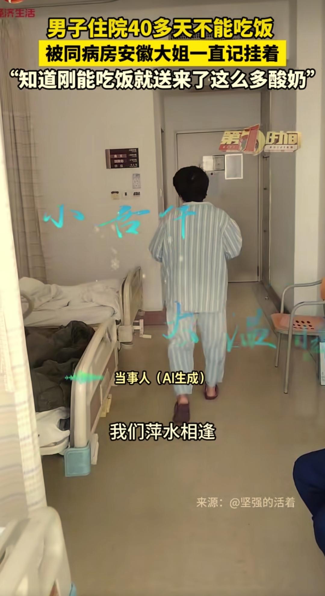 这大姐真是好人!上海,一男子生病住院,期间有40天不能吃饭,没想到,同病房的大姐