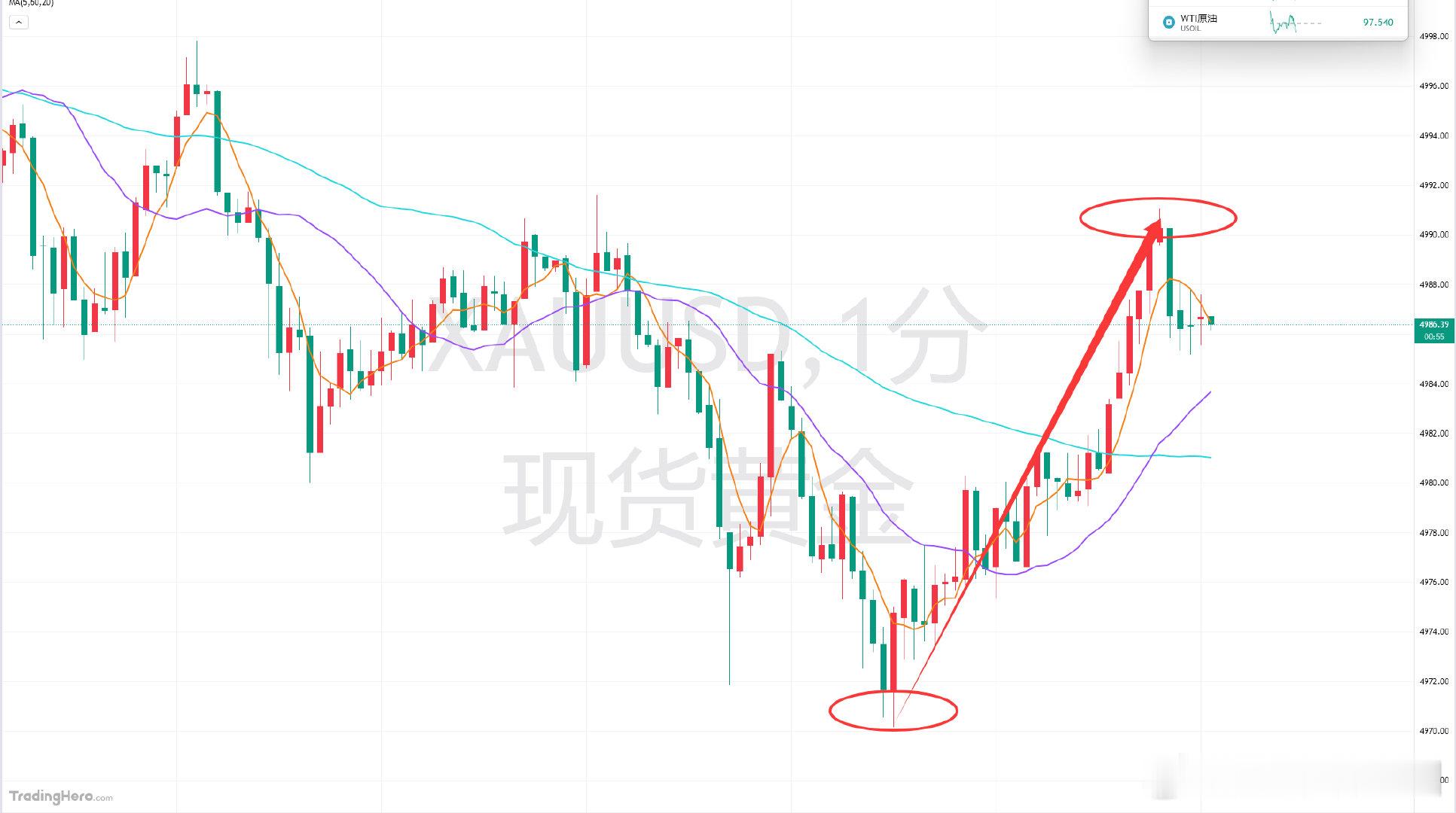 目前黄金精准抵达4990止盈目标,晚间分享4970的多单,这不就直接收获拿下200点!