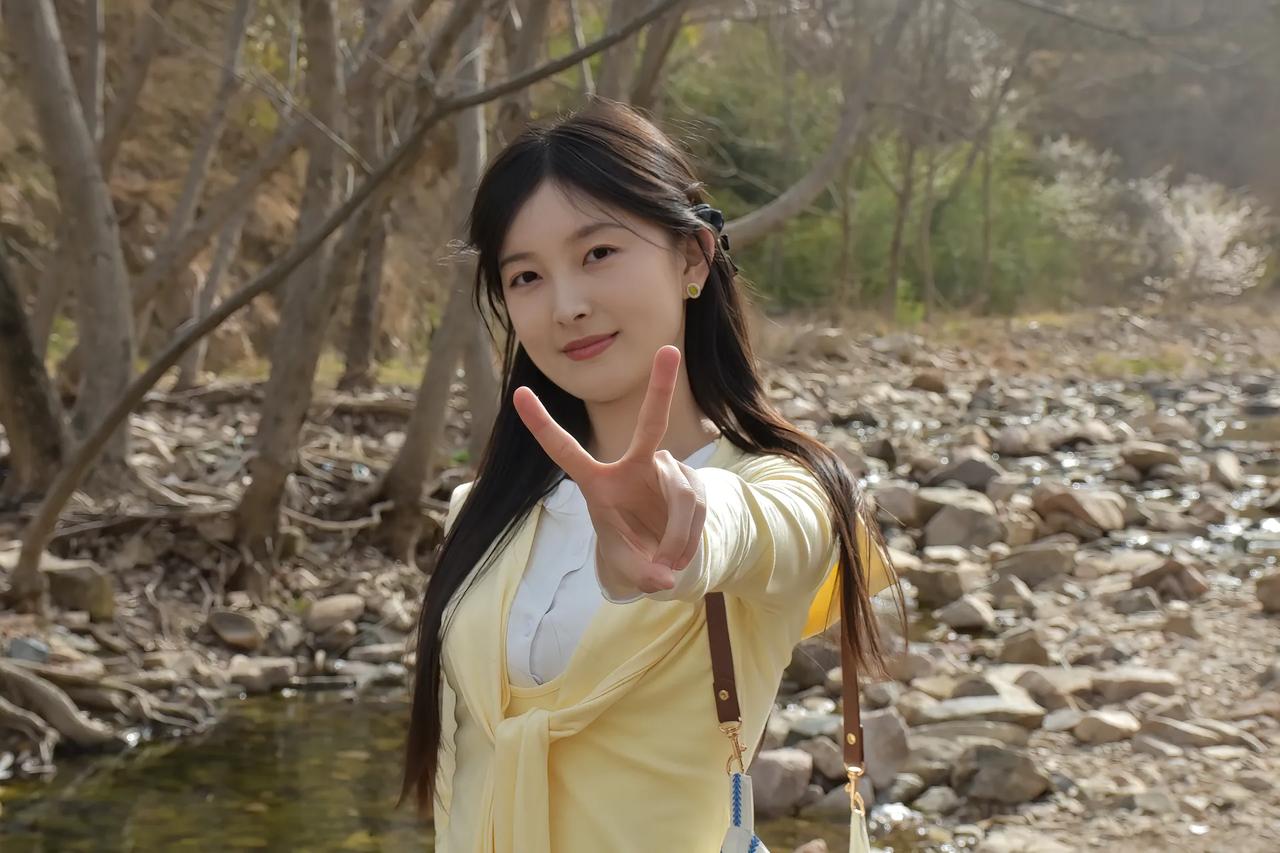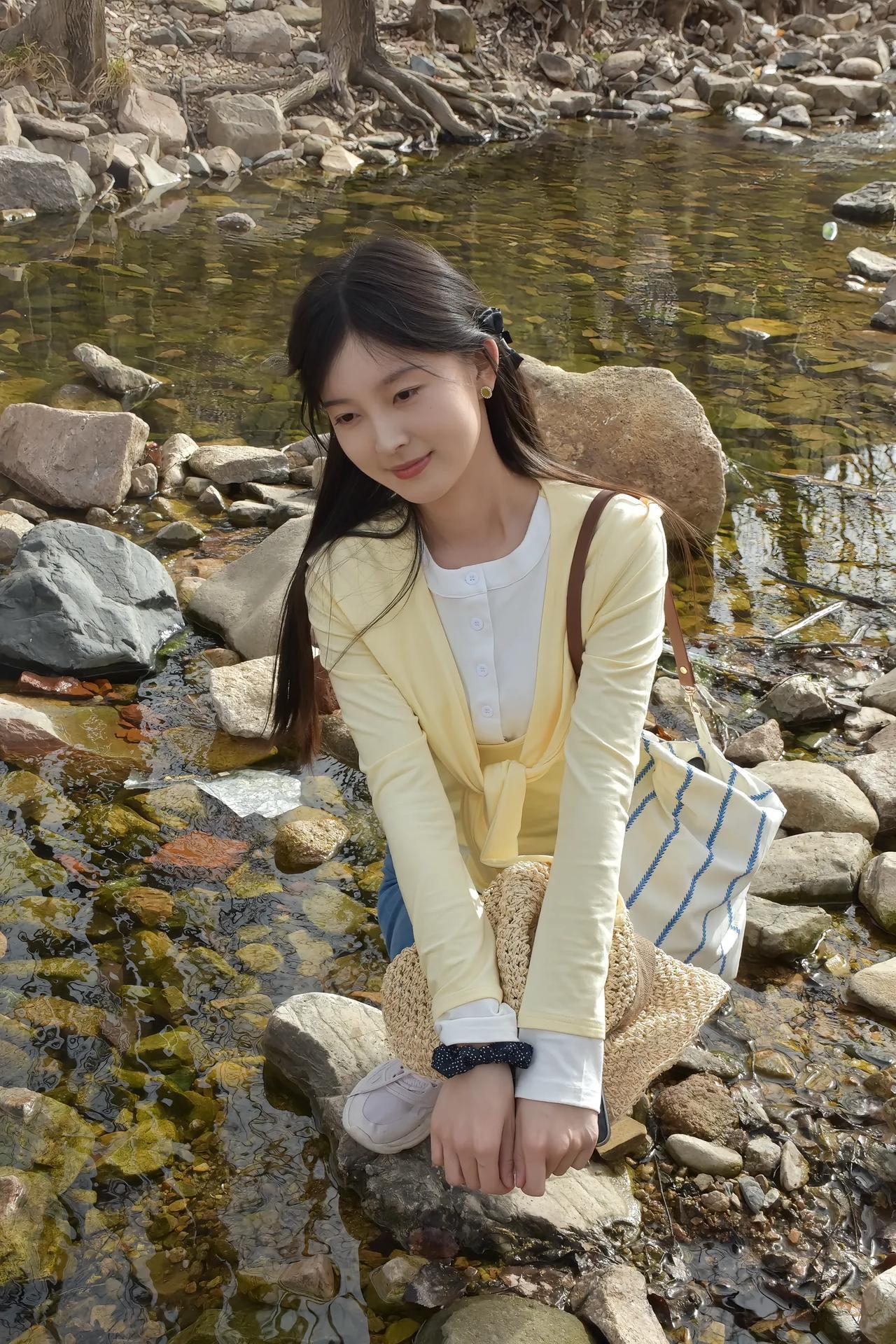溪边轻抚石,心随流水静。