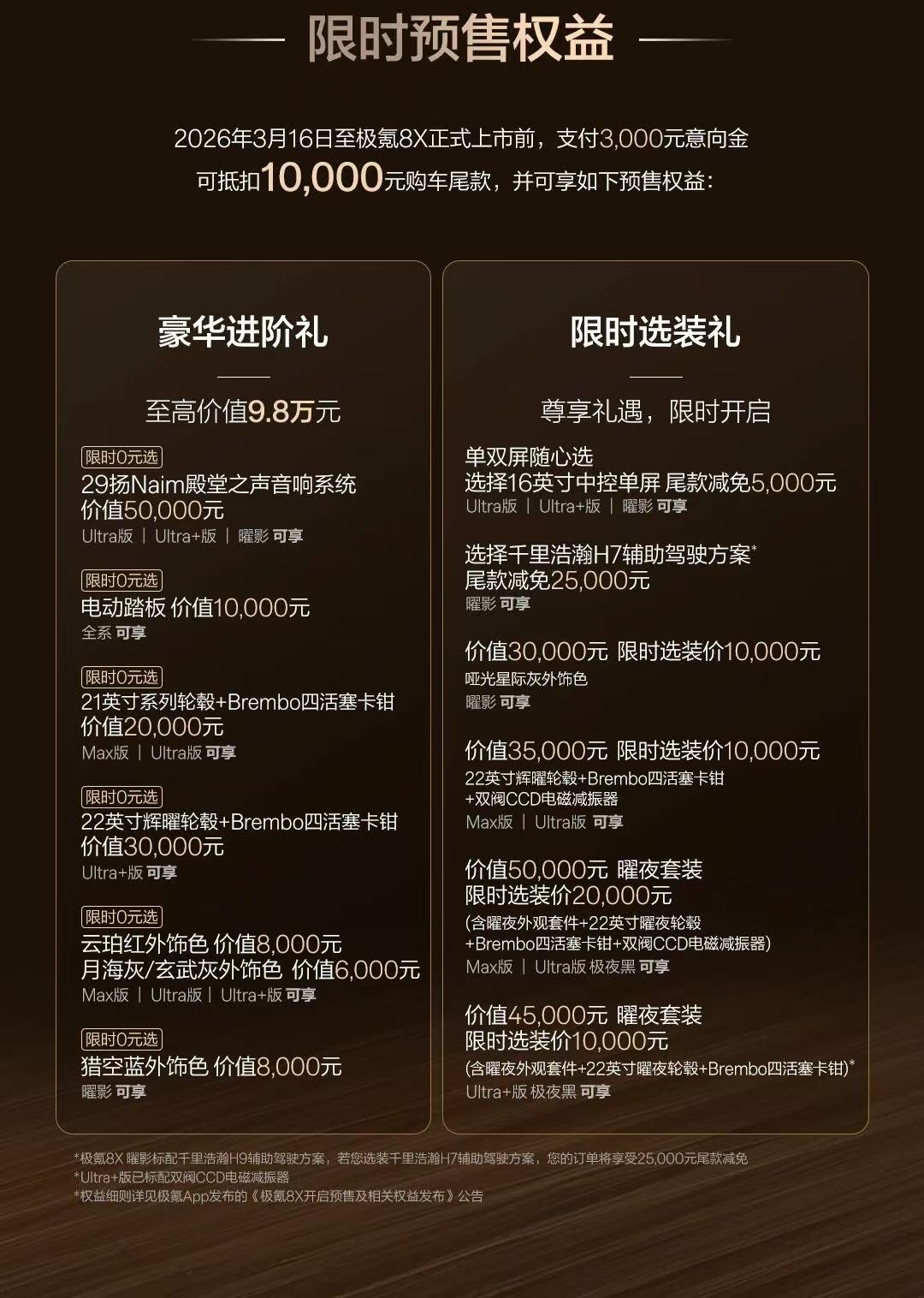 37.68w起,极氪8X发预售价了。那有人想要六座怎么办?可以多加1万块选装。 权益挺多,你得花点时间去解读。 来吧,这个预售价,你觉得它对比竞品怎么样?