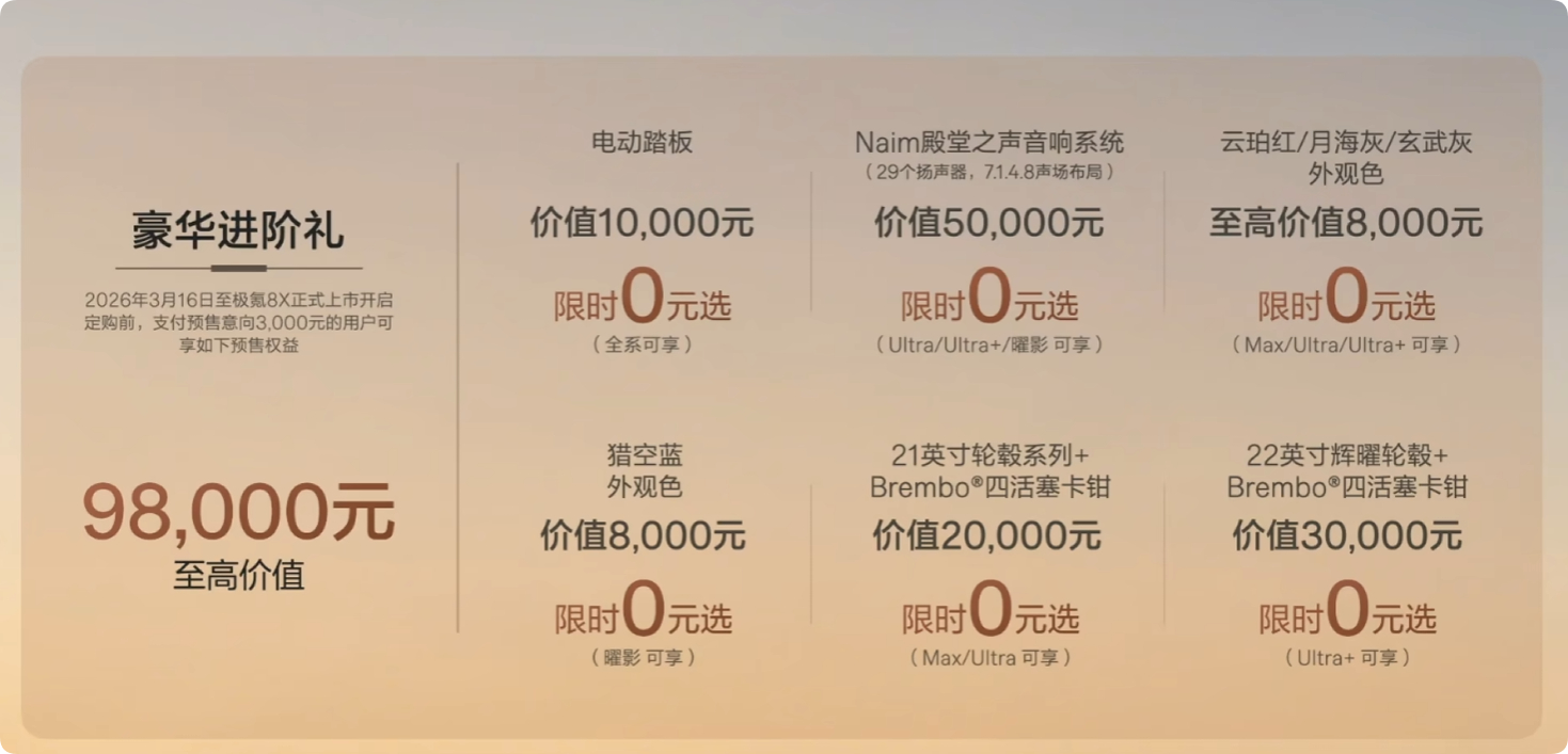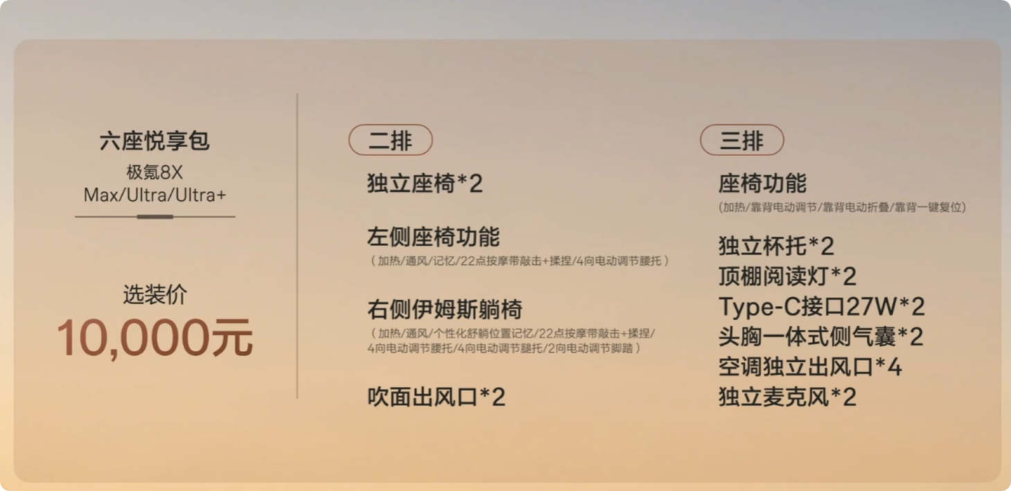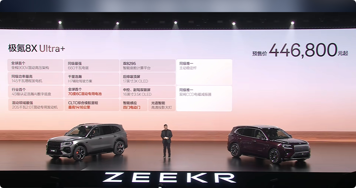 极氪8X 预售价正式发布X8 Max:37.68万8X Ultra L:39.68万8X Ultra+:44.68万8X 曜影:51.68万