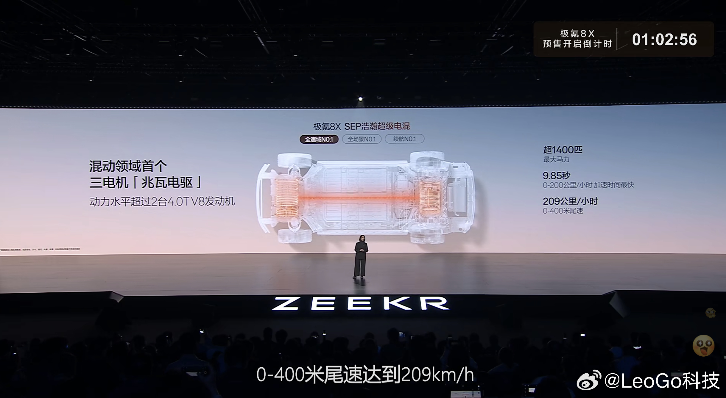 极氪8X新公路之王 SEP 浩瀚超级电混,三电机版综合功率1030kW(1400匹马力),零百加速进入2秒级...果然是新公路之王!极氪8X