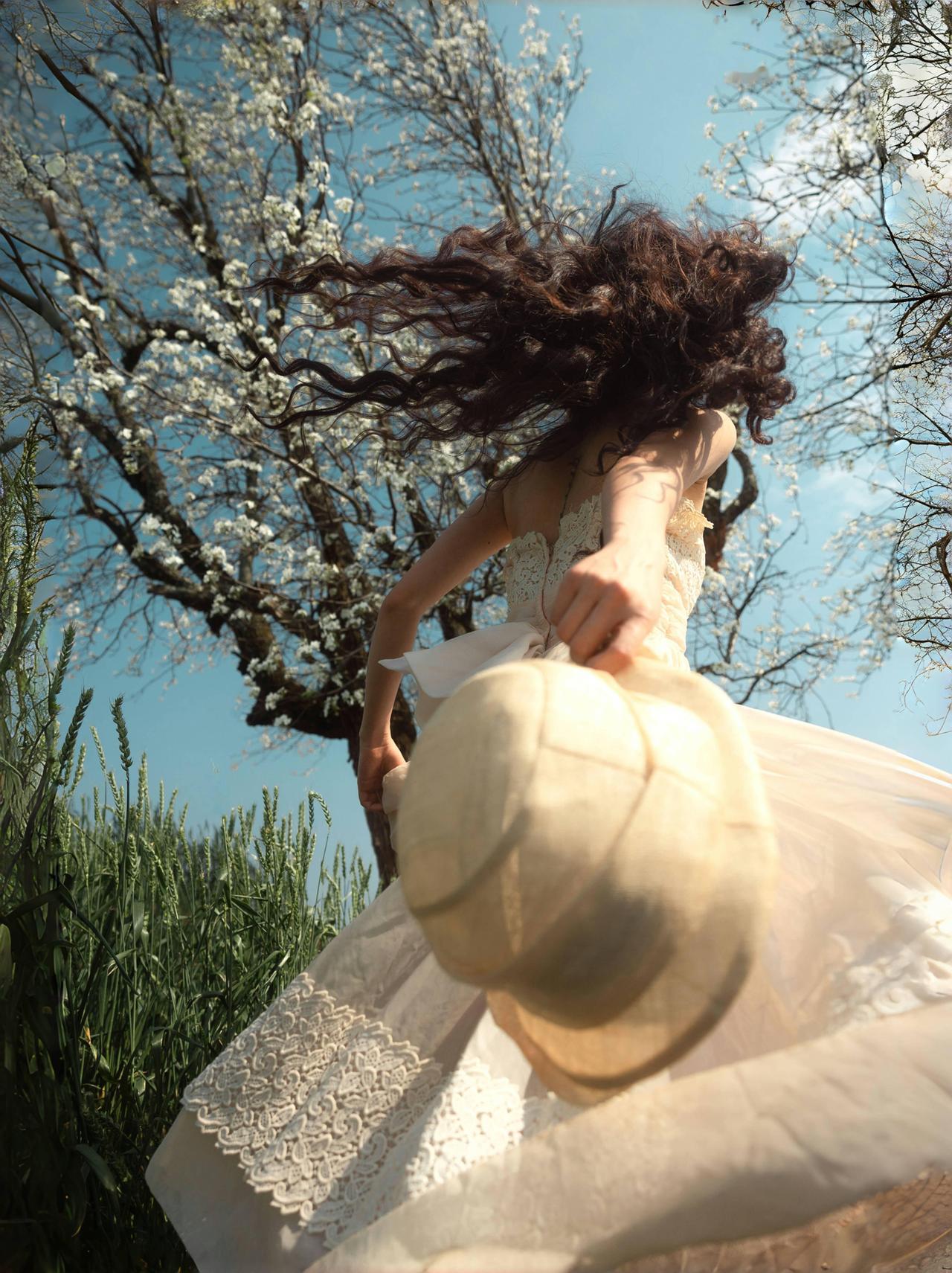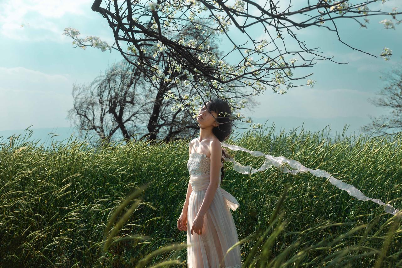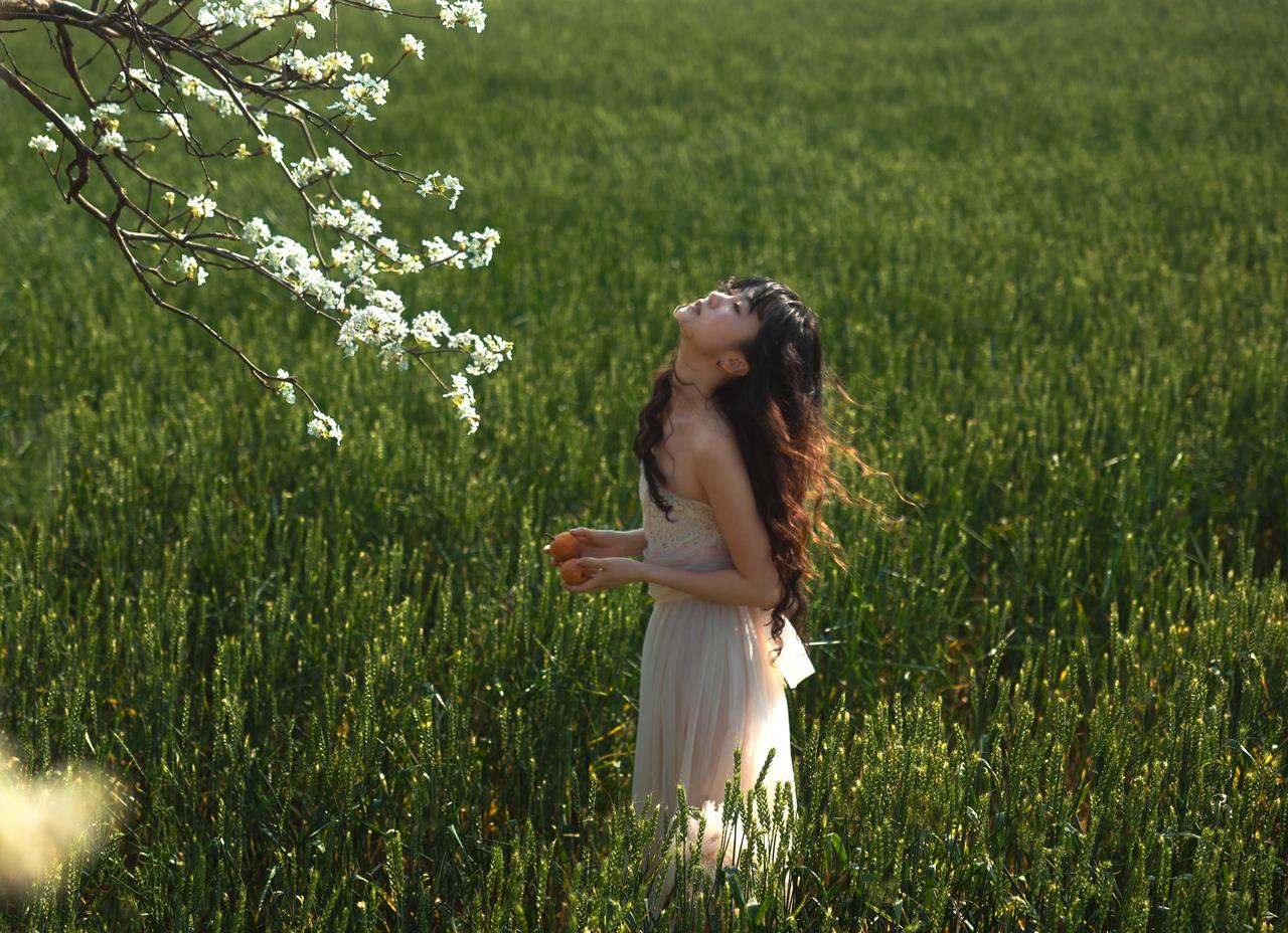 春日田野人像作品在于对细节质感的极致追求与氛围意境的深度塑造,让画面既有细腻的视觉细节,又有耐人寻味的情感意境。作品在细节把控上极为用心,人物发丝的卷曲纹理、服饰蕾丝的精致细节、花枝的花瓣脉络,都被清晰呈现,即使是背景田野的草叶纹理,也保留了自然的质感,画面细节丰富且不杂乱,层次清晰。 光影塑造兼顾了质感与意境,侧逆光勾勒出人物轮廓的同时,让光线穿透花枝与发丝,形成细碎的光斑,这些光斑落在人物与田野上,既增加了画面的梦幻感,又丰富了细节层次。人物面部的光影过渡自然,明暗对比柔和,既凸显了五官轮廓,又保留了皮肤的细腻质感,避免了光影生硬带来的违和感。 色彩氛围精准契合春日主题,绿色田野的清新、白色花枝的纯净、浅杏色服饰的温柔,整体色彩低饱和且协调,蓝天的冷调为画面增添了清冷感,与人物的柔美形成互补,营造出静谧又灵动的春日氛围。构图上采用动静结合的方式,静态画面传递静谧意境,动态画面展现鲜活气息,不同景别的搭配(特写、半身、全身)让画面节奏丰富,既展现了人物细节,又呈现了环境全貌。整体而言,作品通过细节与意境的双重塑造,让春日田野人像的美感与情感得以充分表达,兼具观赏性与艺术性。