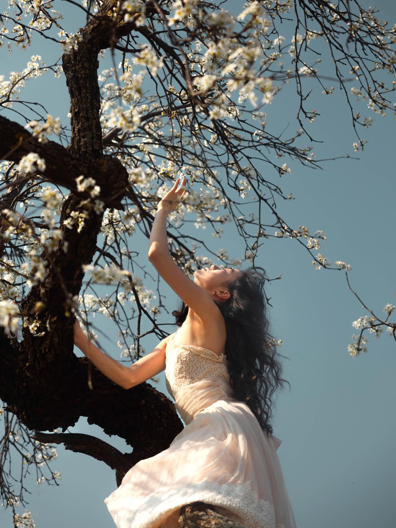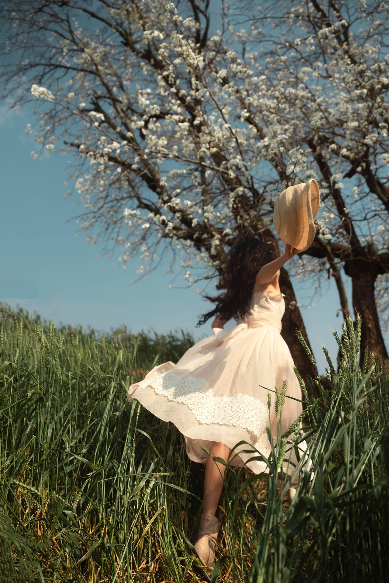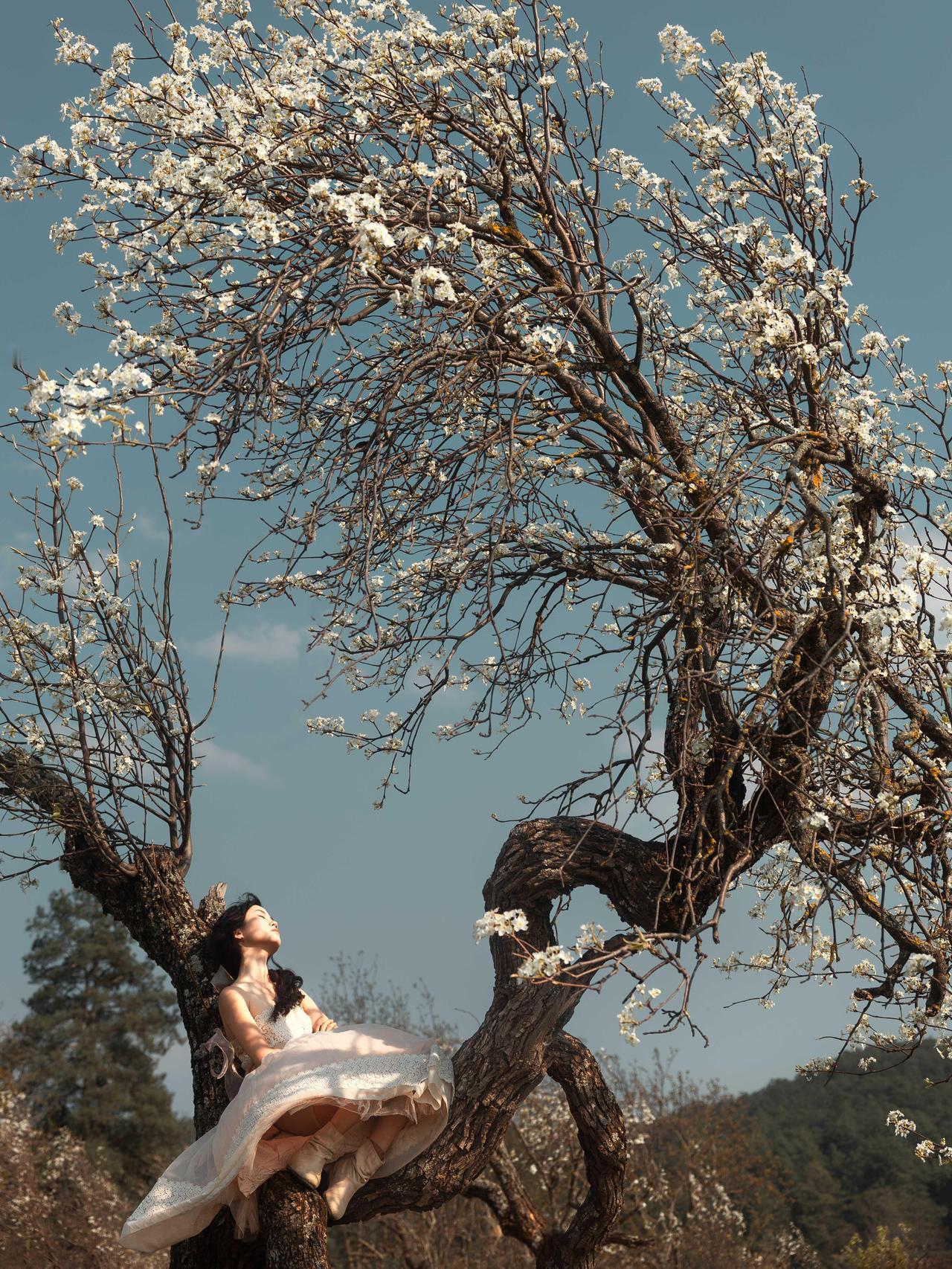 春日田野人像作品在于对细节质感的极致追求与氛围意境的深度塑造,让画面既有细腻的视觉细节,又有耐人寻味的情感意境。作品在细节把控上极为用心,人物发丝的卷曲纹理、服饰蕾丝的精致细节、花枝的花瓣脉络,都被清晰呈现,即使是背景田野的草叶纹理,也保留了自然的质感,画面细节丰富且不杂乱,层次清晰。 光影塑造兼顾了质感与意境,侧逆光勾勒出人物轮廓的同时,让光线穿透花枝与发丝,形成细碎的光斑,这些光斑落在人物与田野上,既增加了画面的梦幻感,又丰富了细节层次。人物面部的光影过渡自然,明暗对比柔和,既凸显了五官轮廓,又保留了皮肤的细腻质感,避免了光影生硬带来的违和感。 色彩氛围精准契合春日主题,绿色田野的清新、白色花枝的纯净、浅杏色服饰的温柔,整体色彩低饱和且协调,蓝天的冷调为画面增添了清冷感,与人物的柔美形成互补,营造出静谧又灵动的春日氛围。构图上采用动静结合的方式,静态画面传递静谧意境,动态画面展现鲜活气息,不同景别的搭配(特写、半身、全身)让画面节奏丰富,既展现了人物细节,又呈现了环境全貌。整体而言,作品通过细节与意境的双重塑造,让春日田野人像的美感与情感得以充分表达,兼具观赏性与艺术性。