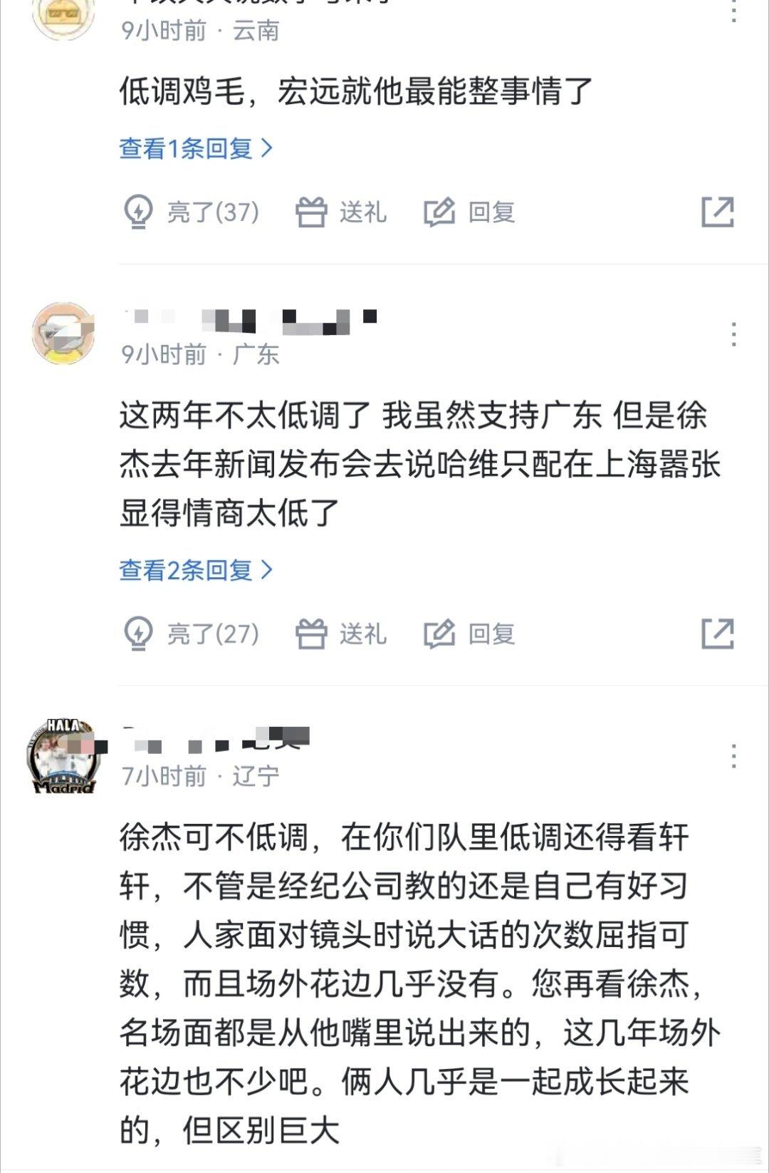 笑死我了,广东球迷说徐杰也低调,其他队球迷都出来反驳