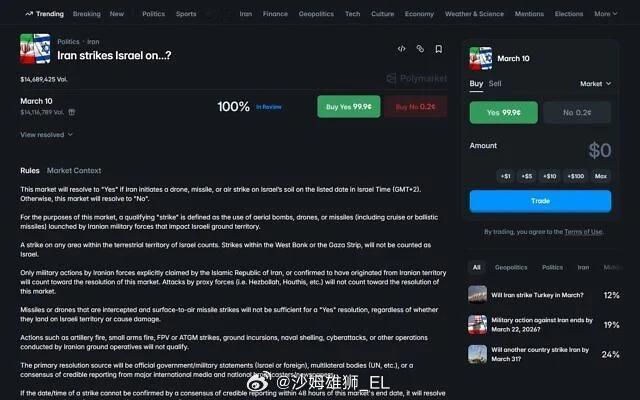 据媒体报道,日前一名以色列军事记者伊曼纽尔·法比安因为对伊朗导弹袭击的报道收到了来自Polymarket赌狗的威胁。 原因是一些以色列人在Polymarket上下注,赌3月10日的一次伊朗导弹袭击被成功拦截,而伊曼纽尔·法比安在《以色列时报》上发表的追踪报道将那次导弹袭击描述为“导弹命中”。此后,以色列赌狗们联系伊曼纽尔,要求他根据贝特谢梅什市政府和红大卫盾会后来更正的官方报道,将“命中”(impact)改为“被拦截的残骸和拦截弹药碎片散落在现场”,帮助他赢钱。 然后《以色列时报》去研究了这个赌局,发现描述中明确表示,只有未被拦截才算打击成功,而这个局里已经有人投了上千万美元。 原本伊曼纽尔·法比安只是当个乐子看,后来他发现情况似乎很严重——随着结算时间接近,他发现这群以色列赌狗直接疯了,先是到处冒充他发假消息,然后又人肉他的联系方式进行持续骚扰,最后直接上升到死亡威胁:“你根本不知道自己冒了多大的风险。今天是你职业生涯中最重要的一天。你有两个选择:要么相信我们有能力干掉你,在你让我们损失90万美元之后,我们会投入至少90万美元来彻底解决你;要么带着钱结束这一切,并重新赢得你之前的生活”、我要求你在10分钟内回复。我们曾提出让你悄悄结束这件事,让你获利,一切都烟消云散。但你似乎想拖延时间”、“我们绝不会放弃这样一笔巨款”、“如果你决定不纠正谎言,任由谎言继续流传下去,你会发现你的敌人会不惜一切代价让你痛苦不堪——只要在法律框架内”、“还剩86分钟。你的生命只有你自己要负责”等等。甚至还有人说要起诉他。 比较搞笑的是,他发现这群赌狗已经固执地认为,他发这个报道,一定是因为他是在对面50倍赔率的选项上下注的人,为了赢他们的钱而“虚构新闻”。(当然,就以色列媒体人的德性,其中无端猜测搞不好还就是真的)。