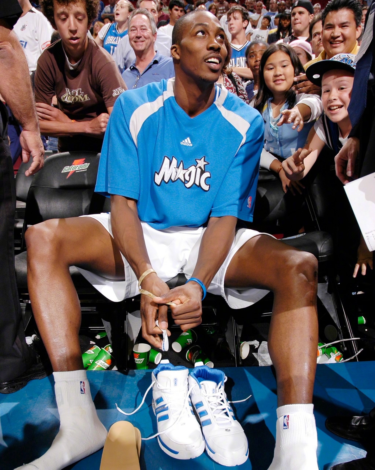 霍华德生涯穿着球鞋的变化,从阿迪时期的签名鞋,到匹克时期的签名鞋,再到后来生涯末期穿耐克、锐步等。