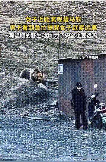 真是作死!2026年2月6日,西藏一男子野外游玩,亲眼撞见奇葩一幕,一名女子居然毫无防备,近距离凑到野生藏马熊身边观望,他当场又急又无语,扯着嗓子拼命喊她撤离,全程看得旁人惊险到窒息! 藏马熊作为国家一级保护动物,常年栖息在西藏高海拔山林河谷地带,成年个体体重可达150至400公斤,看似笨重,实则奔跑迅捷、爪子锋利,性情凶猛且极具领地意识,尤其在觅食时,一旦察觉威胁便会瞬间发难。 据那曲公安公开信息,截至2025年7月,当地已处理至少6起棕熊(藏马熊隶属棕熊亚种)袭扰事件,涉及入室、伤畜甚至伤人,可见其危险性不容小觑。 当天午后,景区溪边的游人络绎不绝,一名身着浅色外套的女子,趁着同伴拍照的间隙,独自走向溪边的灌木丛。 没走多远,她便发现不远处的空地上,一头深棕色藏马熊正低头觅食,时不时用爪子扒开泥土,寻找地下的根茎和小型啮齿动物,模样看似温顺,实则暗藏凶险。 寻常游人见此情景,都会悄悄绕行,保持安全距离,可这名女子却被好奇心驱使,毫无惧色地放慢脚步,一步步朝藏马熊靠近,还掏出手机准备拍照,丝毫没有意识到危险正在逼近。 最终,她与藏马熊的距离不足两米,这般近距离接触野生藏马熊,让周围不少游人都吓得不敢出声。 这惊险的一幕,恰好被常年在藏区从事户外向导工作的男子张强(化名)看在眼里。 他常年奔走在藏区,深知藏马熊的习性,也清楚近距离接触的致命风险,更知道2024年8月萨普景区就曾发生过游客私自投喂藏马熊,引发熊疑似袭击游客的事件,虽未造成人员受伤,却也足以警示众人。 张强心头一紧,不敢大声呼喊,生怕惊动正在觅食的藏马熊,只能压低声音,急切地示意女子赶紧后退撤离。 女子听到声音后,缓缓转过身,脸上满是疑惑,似乎不明白自己的行为有何不妥,但还是顺从地放慢脚步,朝着人群方向退来。 就在女子即将走到安全区域时,那头藏马熊突然停下觅食的动作,缓缓抬起头,朝人群方向望了过来,那一刻,全场瞬间死寂,所有游人都僵在原地,大气不敢喘,张强的后背也早已被冷汗浸透。 万幸的是,藏马熊看了几秒后,便又低下头继续觅食,并未发起攻击,女子平安回到人群中,依旧一脸茫然,始终没意识到自己刚才已游走在生死边缘。 据悉,萨普景区为应对藏马熊出没,常会用放鞭炮的方式驱赶,当地林草局也多次提醒游客,遇到藏马熊切勿靠近、投喂,可仍有游客心存侥幸,忽视安全底线。 ··